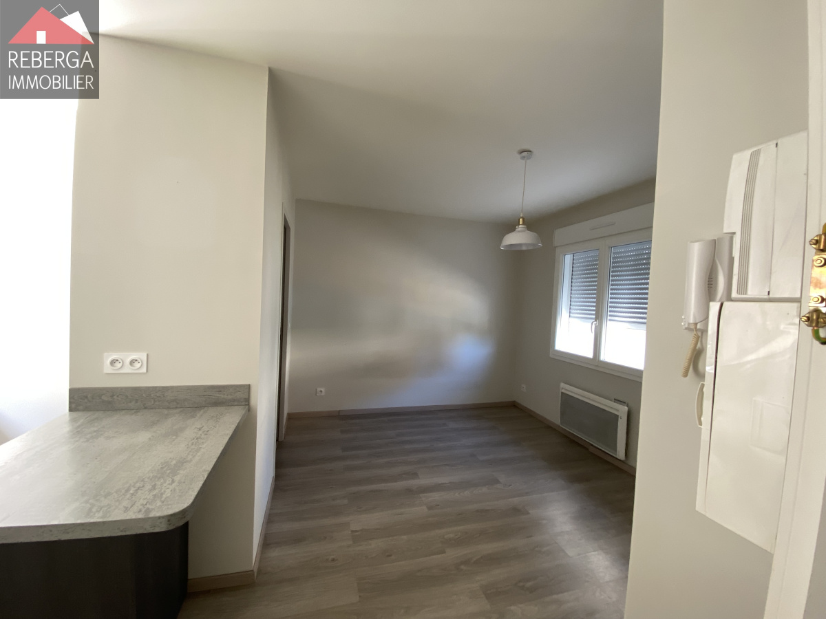 Studio moderne et rénové composé d'une pièce de vie avec un coin cuisine équipée et une salle d'eau avec wc.