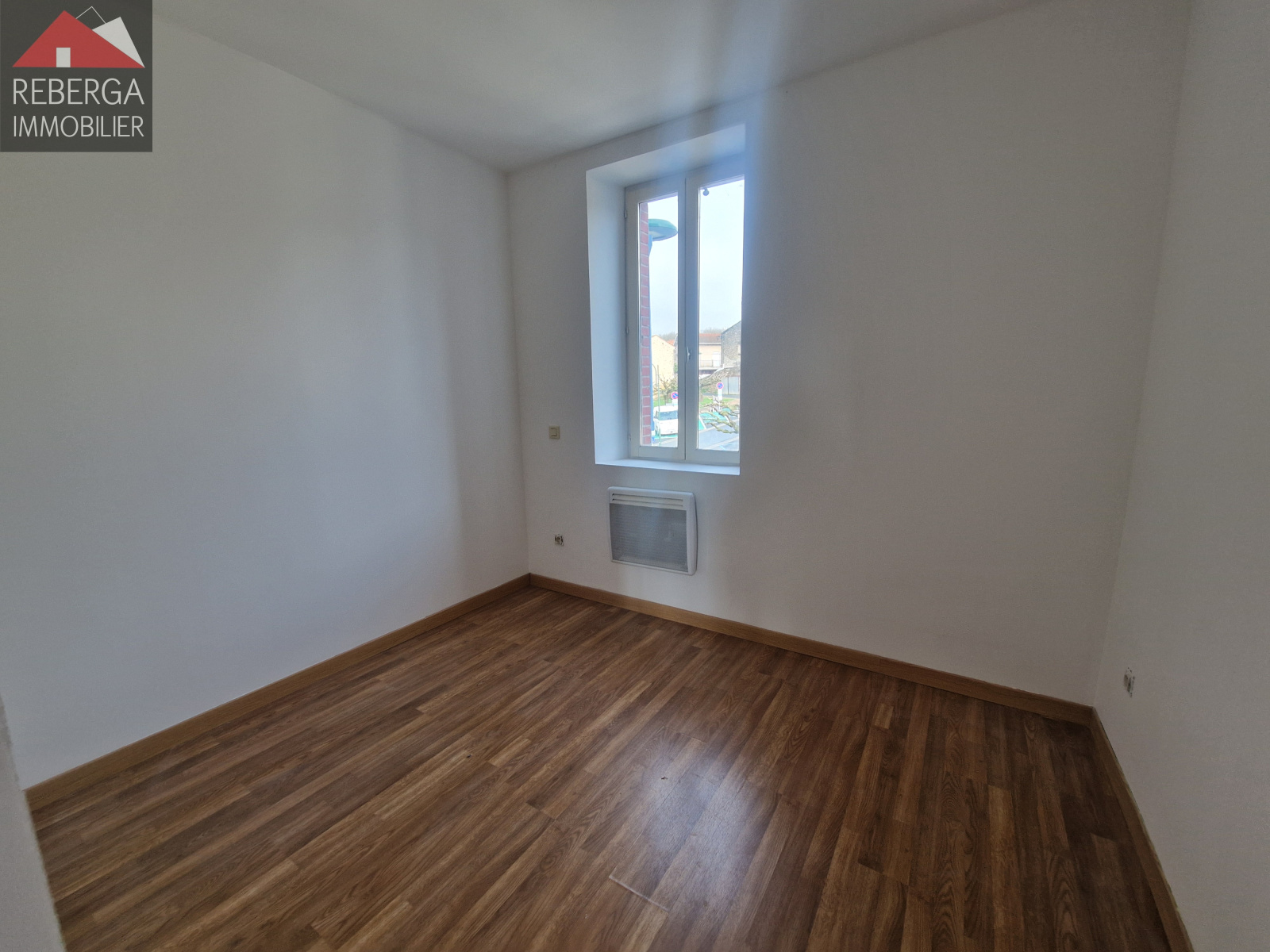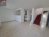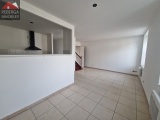 Maison sur deux niveaux, mitoyenne d'un côté comprenant : entrée, toilette séparé, séjour avec coin cuisine équipée (hotte + plaque) et une buanderie. A l'étage, 2 chambres, 1 bureau et une salle de bain. Un coin terrasse sur la partie avant.