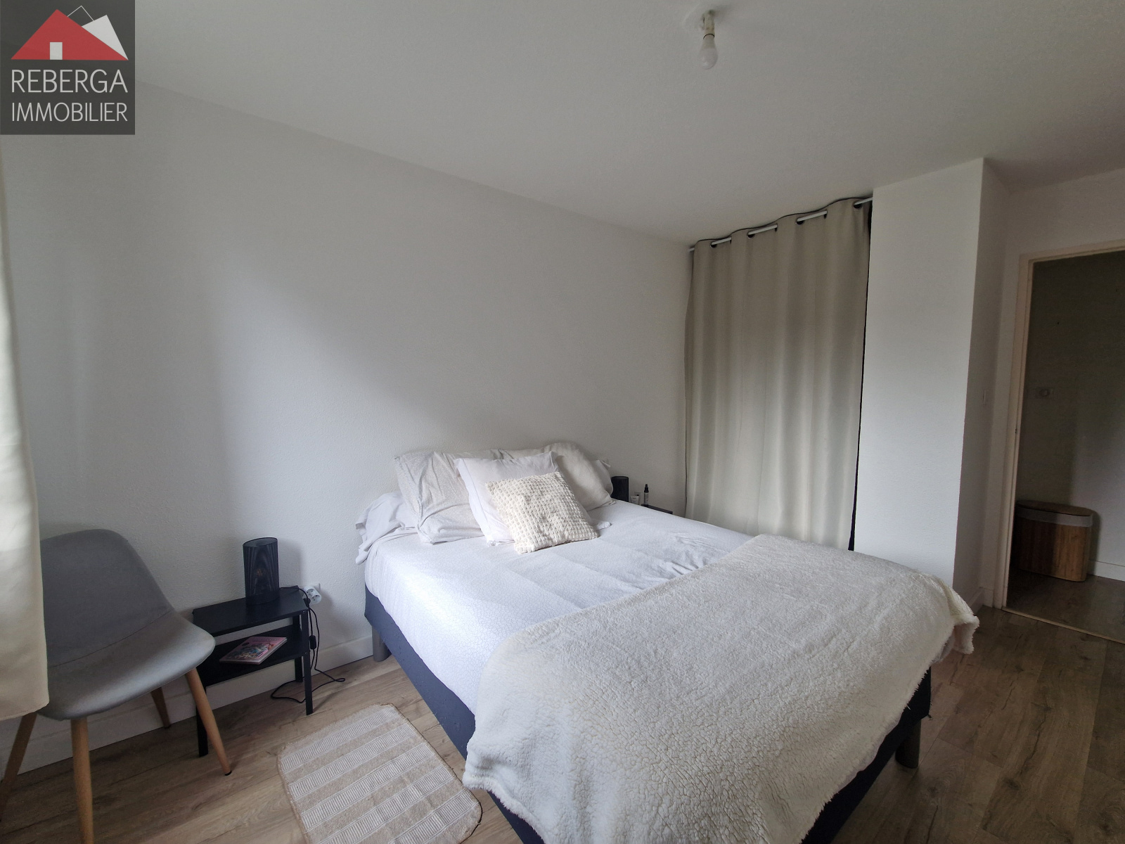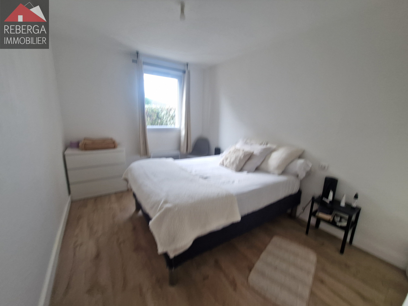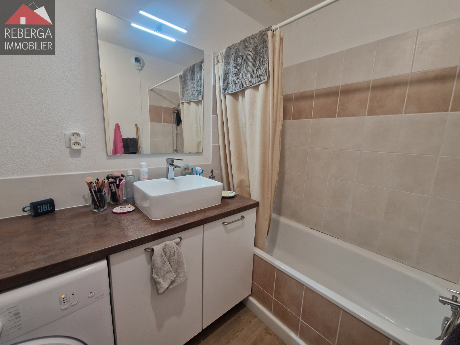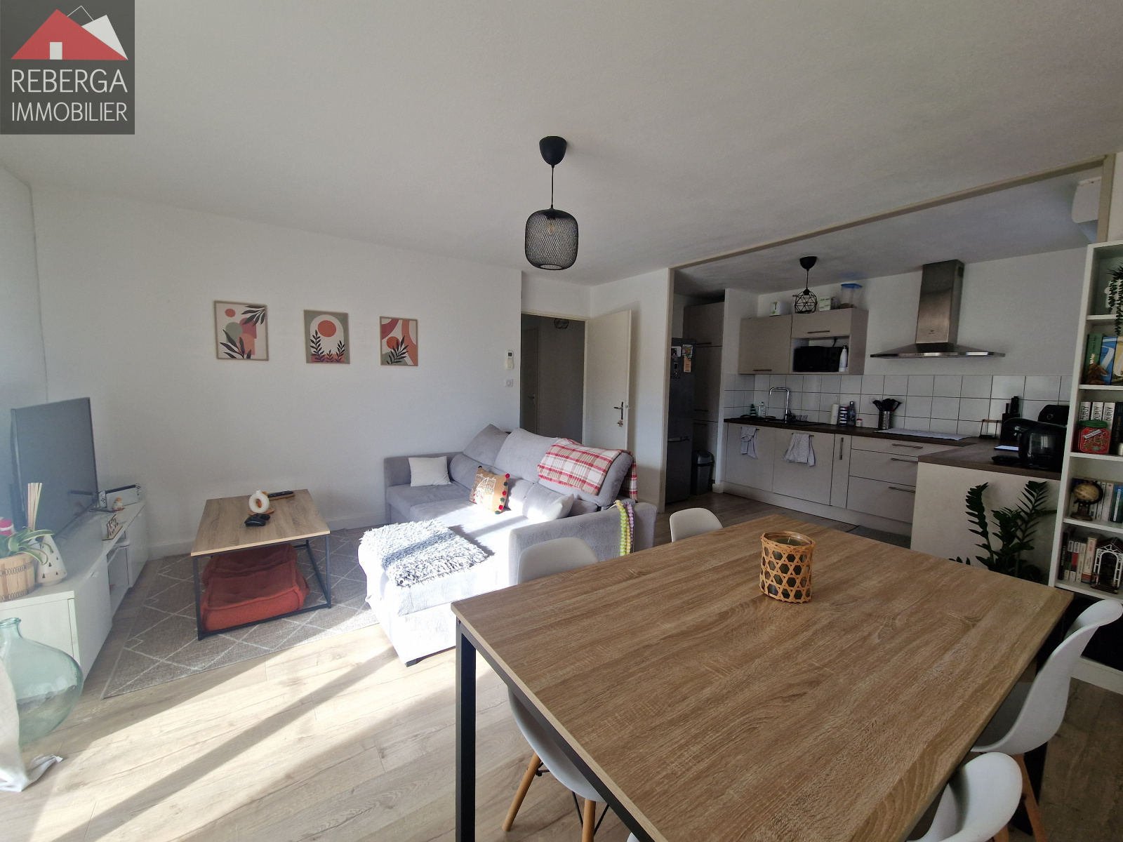Appartement de type 3 comprenant : entrée, salon avec cuisine équipée et aménagée (hotte, plaque, four, micro-onde et lave-vaisselle) ouverte sur le séjour donnant sur le balcon. Au coin nuit : 1 chambre avec placards + 1 bureau et salle de bain. Appartement dans une résidence sécurisée avec piscine. Une place de parking couverte et privative.