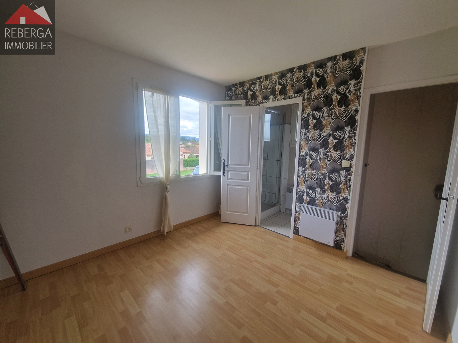 Maison implantée sur un terrain clos et comprenant : entrée avec placard, cuisine équipée et aménagée (hotte, plaque, four), séjour donnant sur une terrasse, 3 chambres avec placards et une salle d'eau. A l'étage, une chambre avec placards et salle d'eau privative. Un garage complète ce bien.