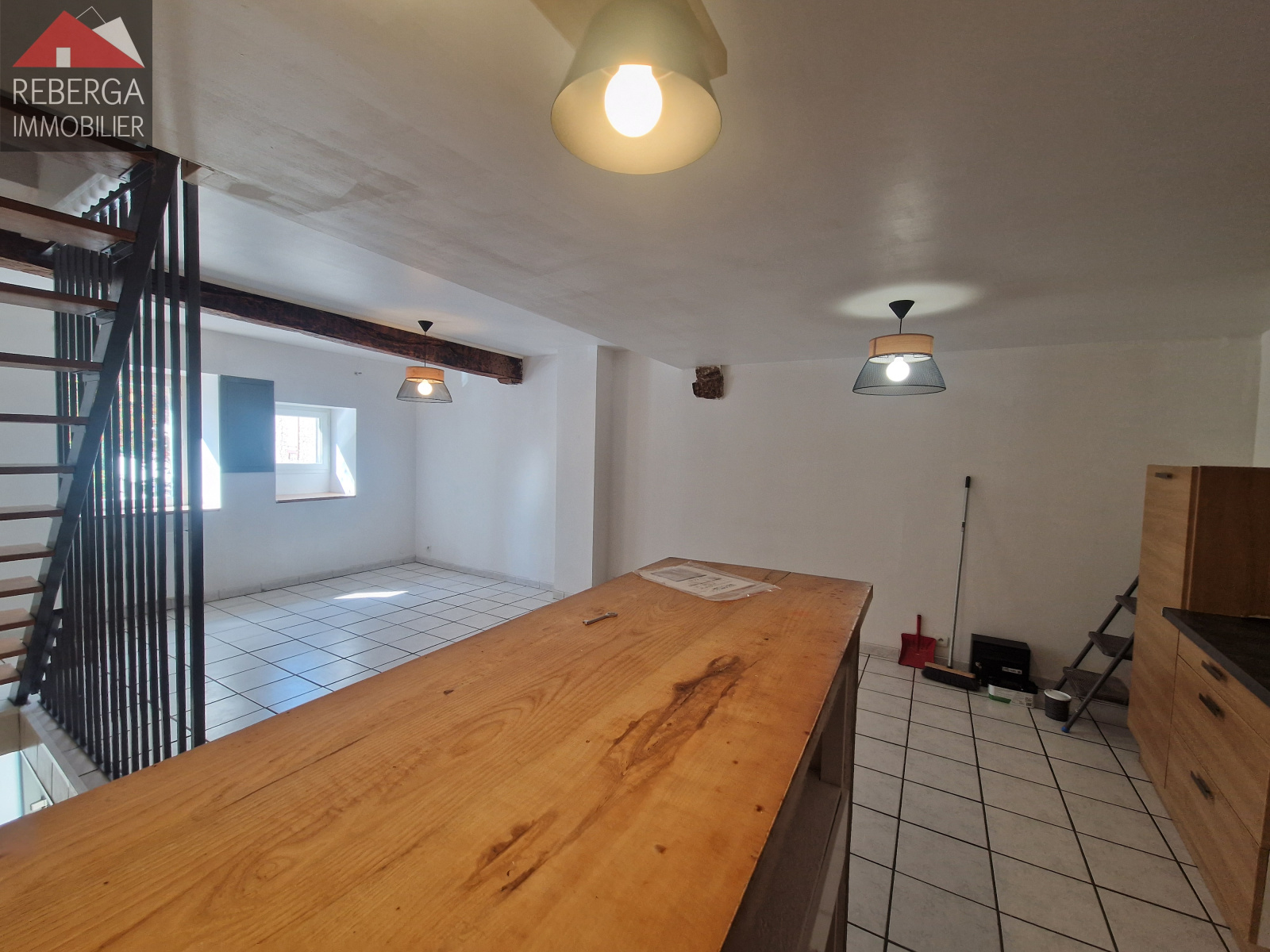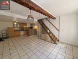 Maison sur 2 niveaux comprenant un séjour avec coin cuisine aménagée (hotte uniquement). A l'étage une chambre, un bureau, une salle d'eau et un toilette séparé. Une place de parking réservée.
