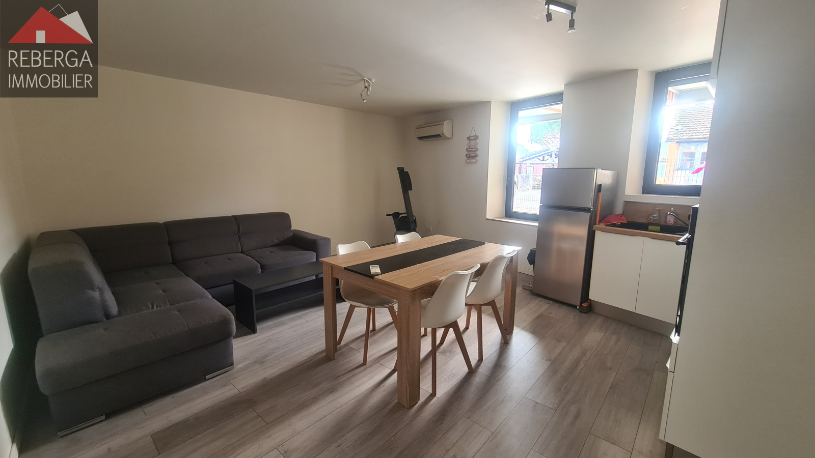 Appartement meublé en rez-de-chaussée comprenant : séjour avec coin cuisine équipée et aménagée,, chambre avec salle d'eau et toilette séparé. Le bien comprendre également une terrasse et une place de parking. Un cellier avec machine à laver complète ce bien. Climatisation réversible. Disponible au 3 Novembre.