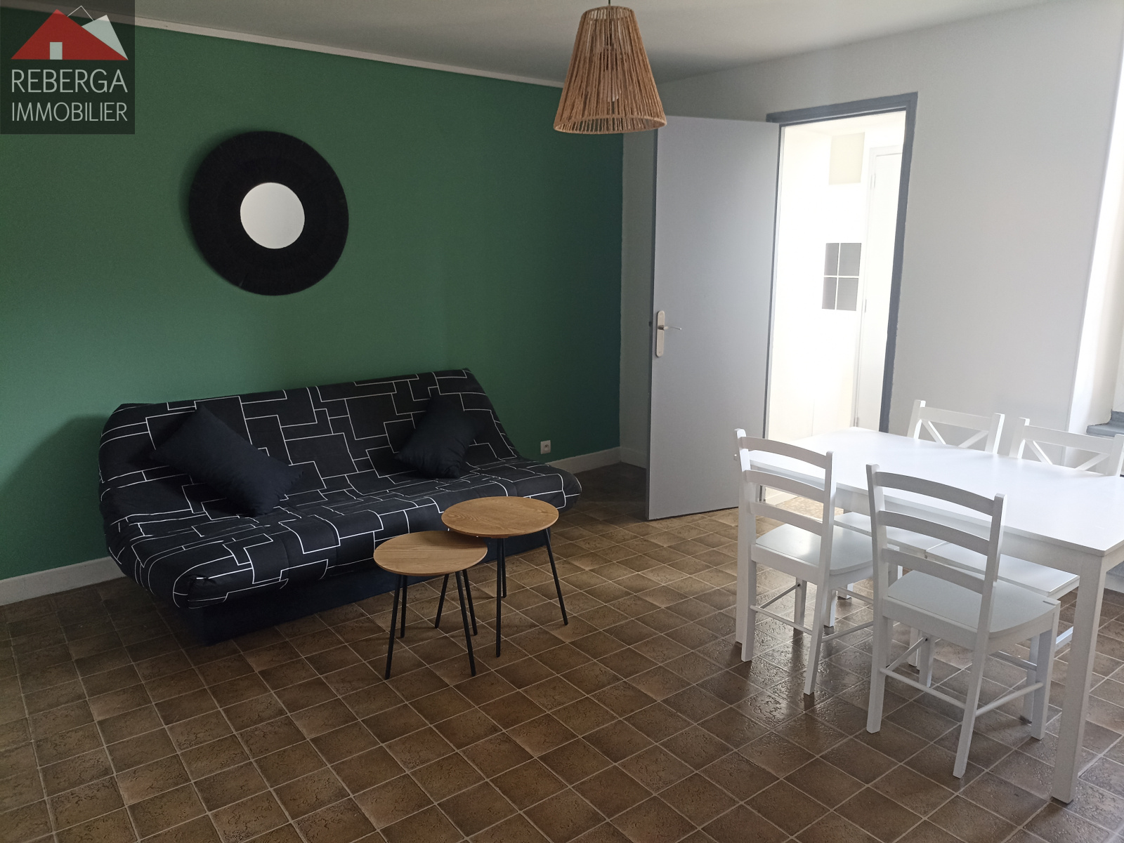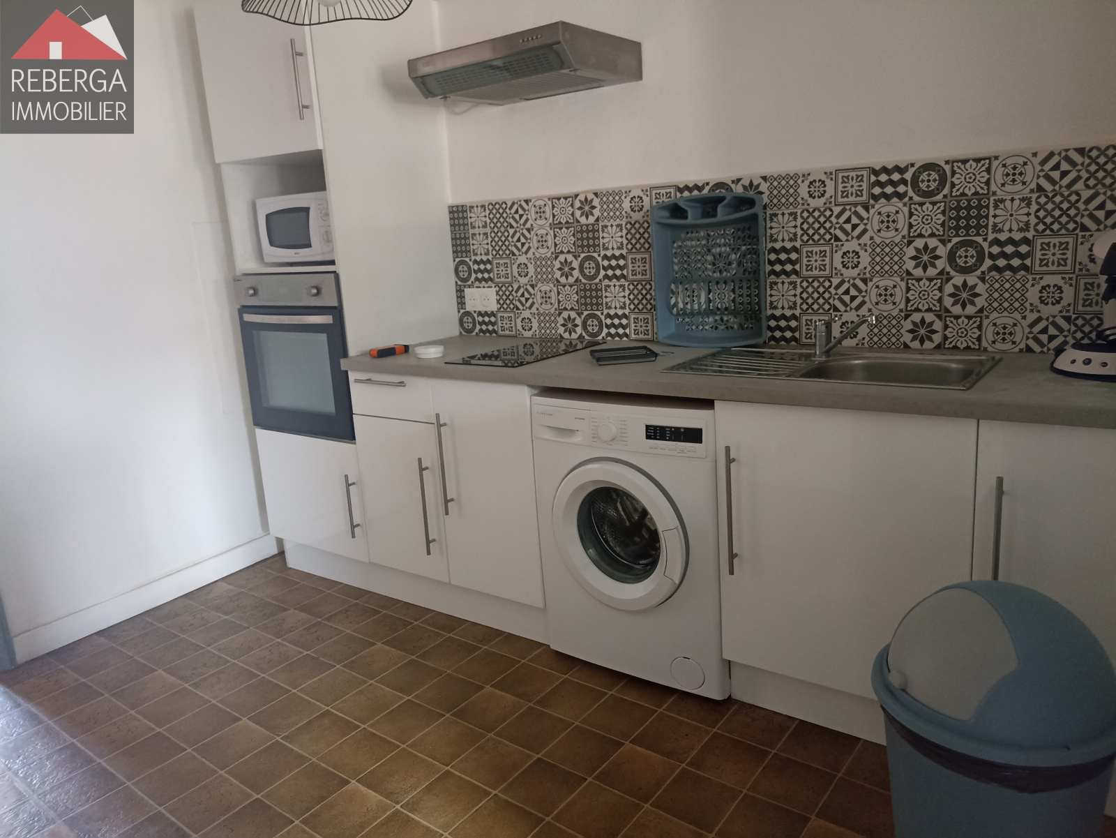 Proche du centre de Mazamet - Au 1er étage, agréable appartement T2 meublé composé d'une entrée directe sur la pièce de vie avec cuisine aménagée et équipée (plaque, hotte, frigo, micro-onde, cafetière, lave linge), une chambre et une salle d'eau avec wc.