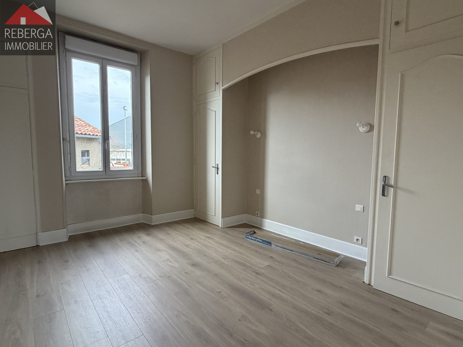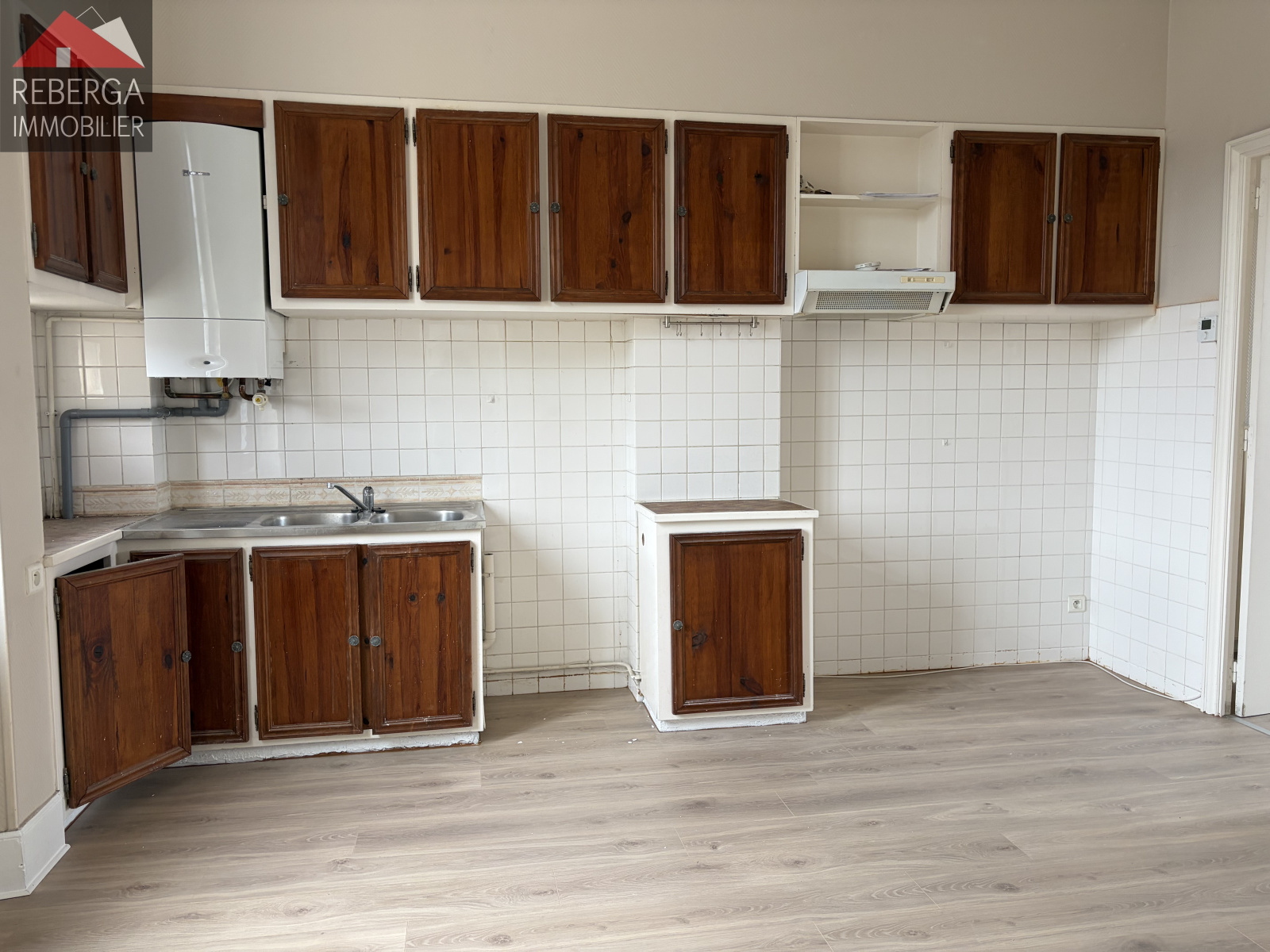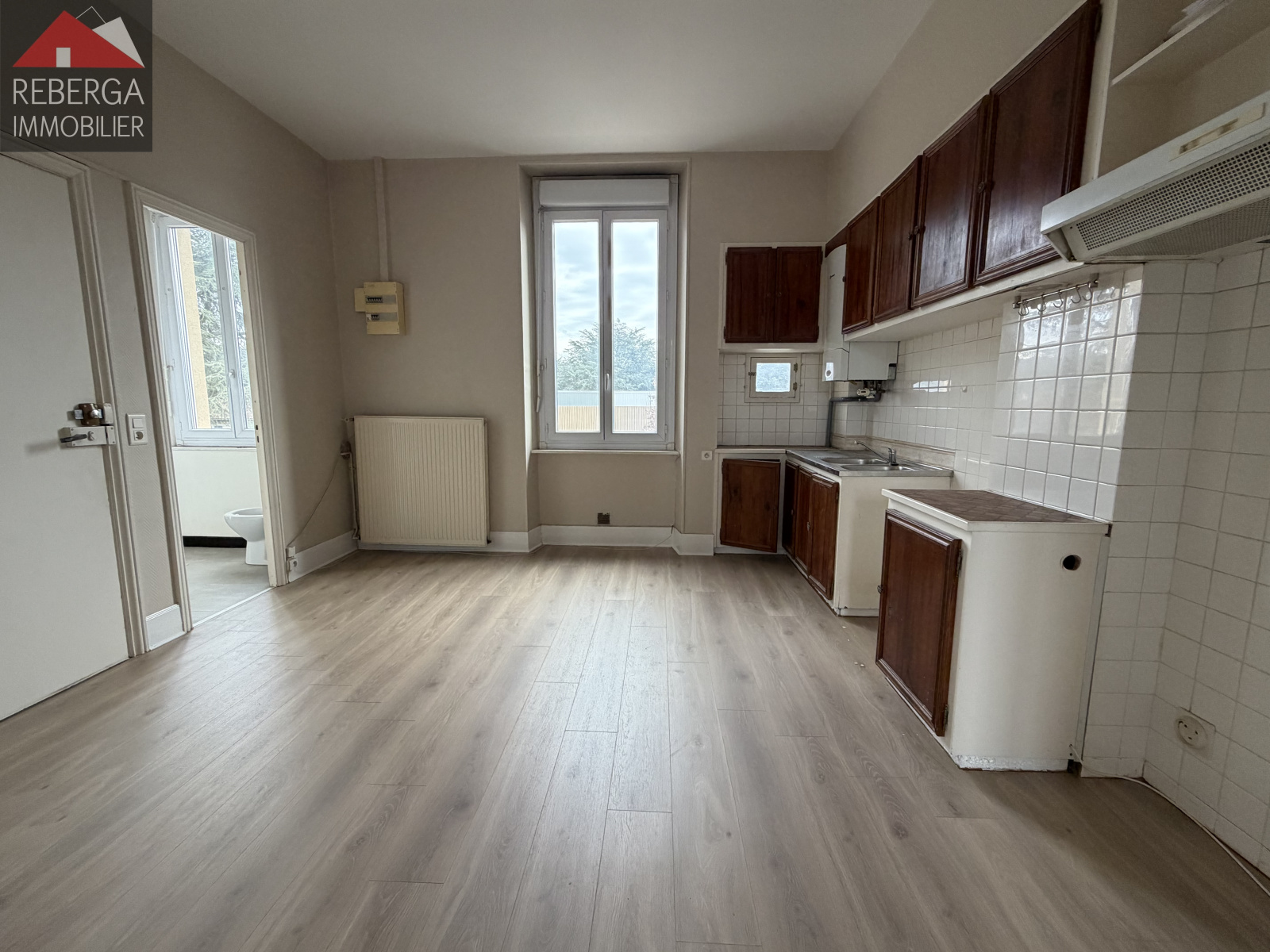 Au 1er étage, appartement de type 2 composé d'une entrée directe sur le séjour avec cuisine aménagée, une chambre avec placards et une salle d'eau avec wc.