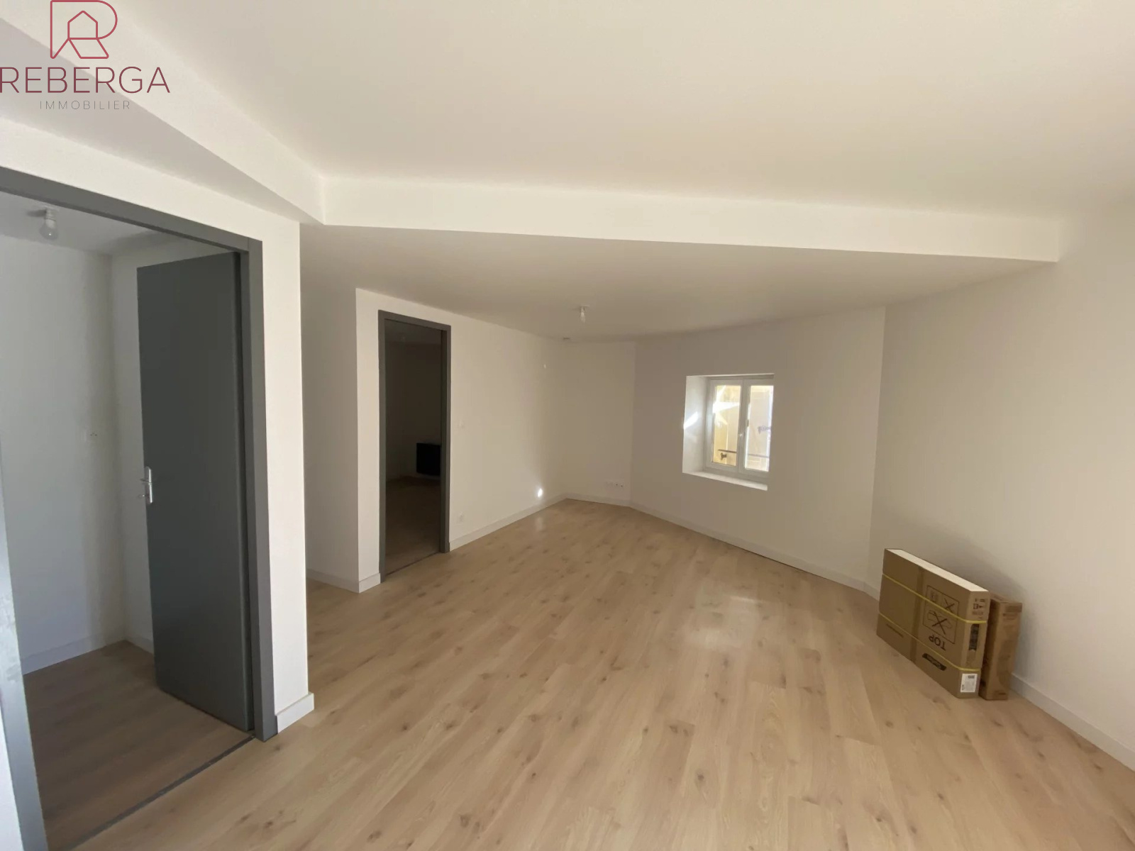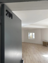Au 2ème étage et dernier étage, appartement T2 composé d'une entrée directe sur la pièce de vie avec cuisine aménagée et équipée (plaque et hotte), une chambre, une salle d'eau et wc.