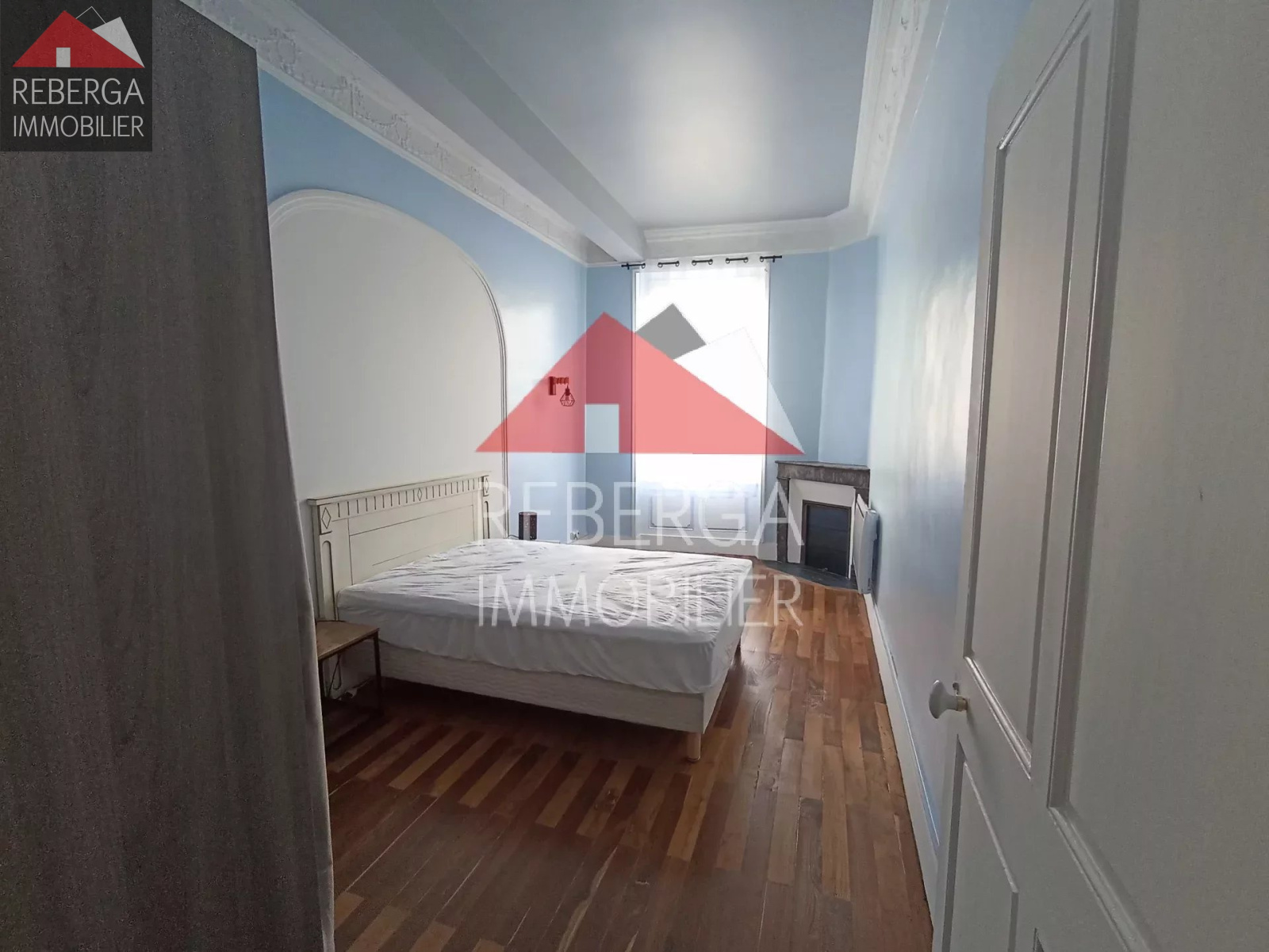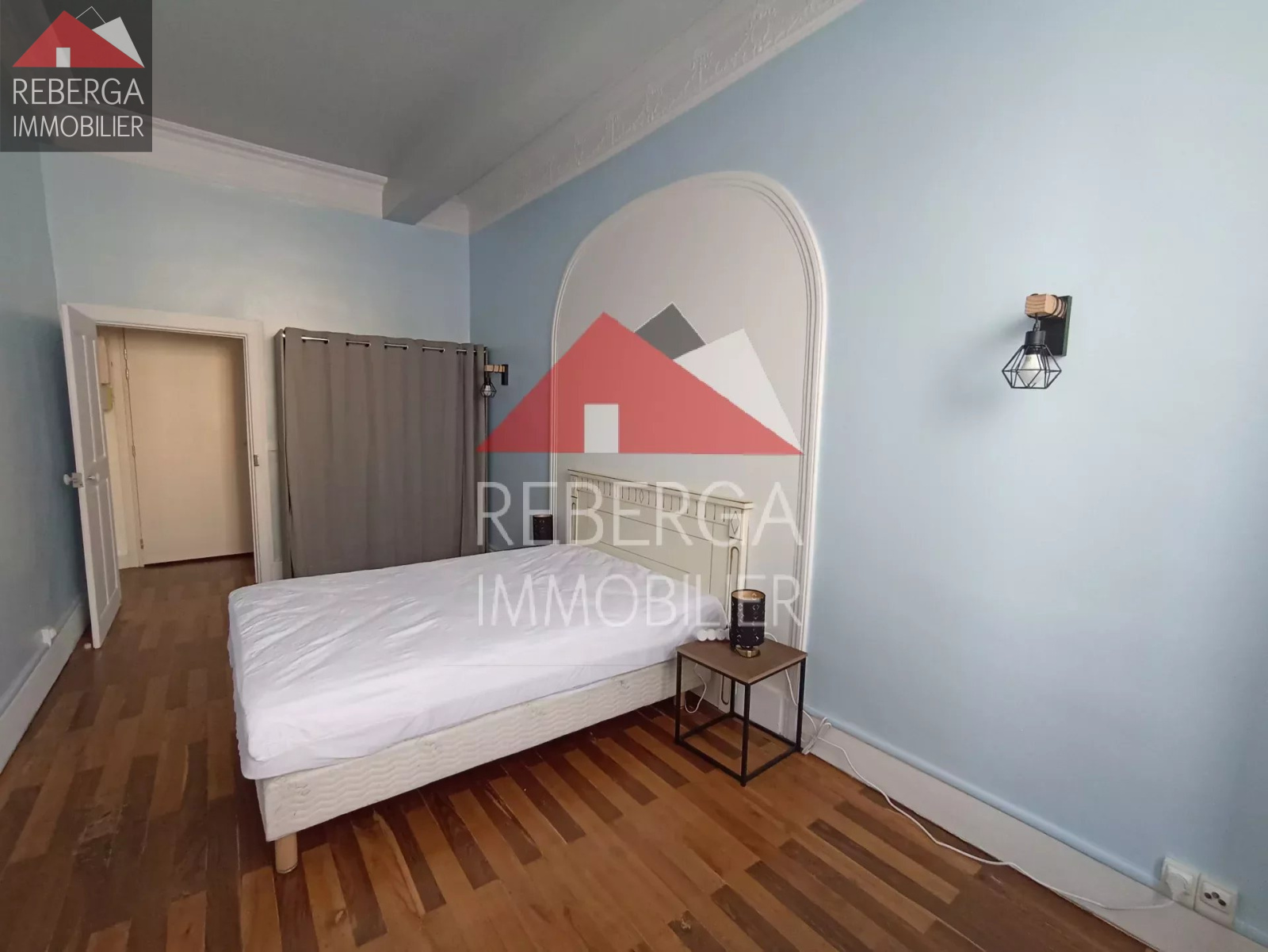 Au 1er étage, bel appartement de type T2 meublé composé d'une entrée desservant un séjour avec cuisine ouverte aménagée et équipée (plaque, hotte, four, micro-onde et frigo/congélateur), une chambre avec placard et une salle d'eau avec wc. Appartement avec beaucoup de charme: parquet, moulures et belle hauteur sous plafond.