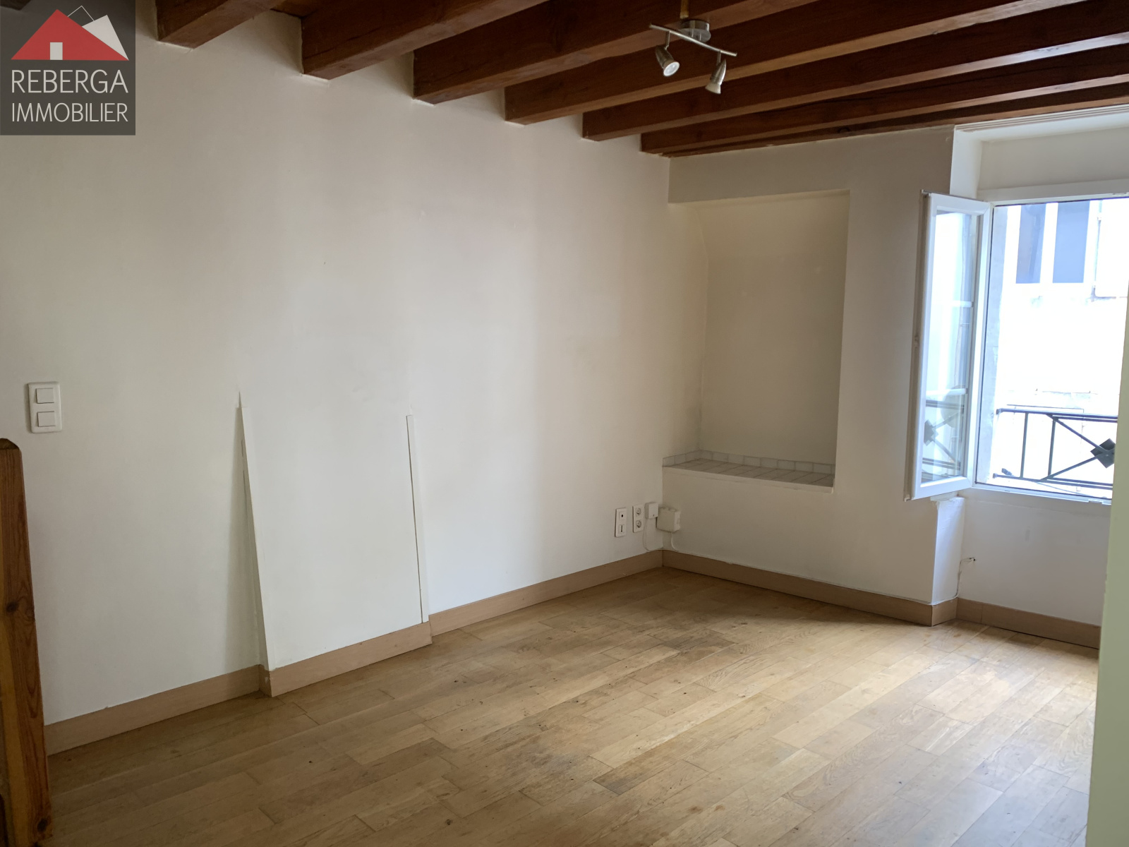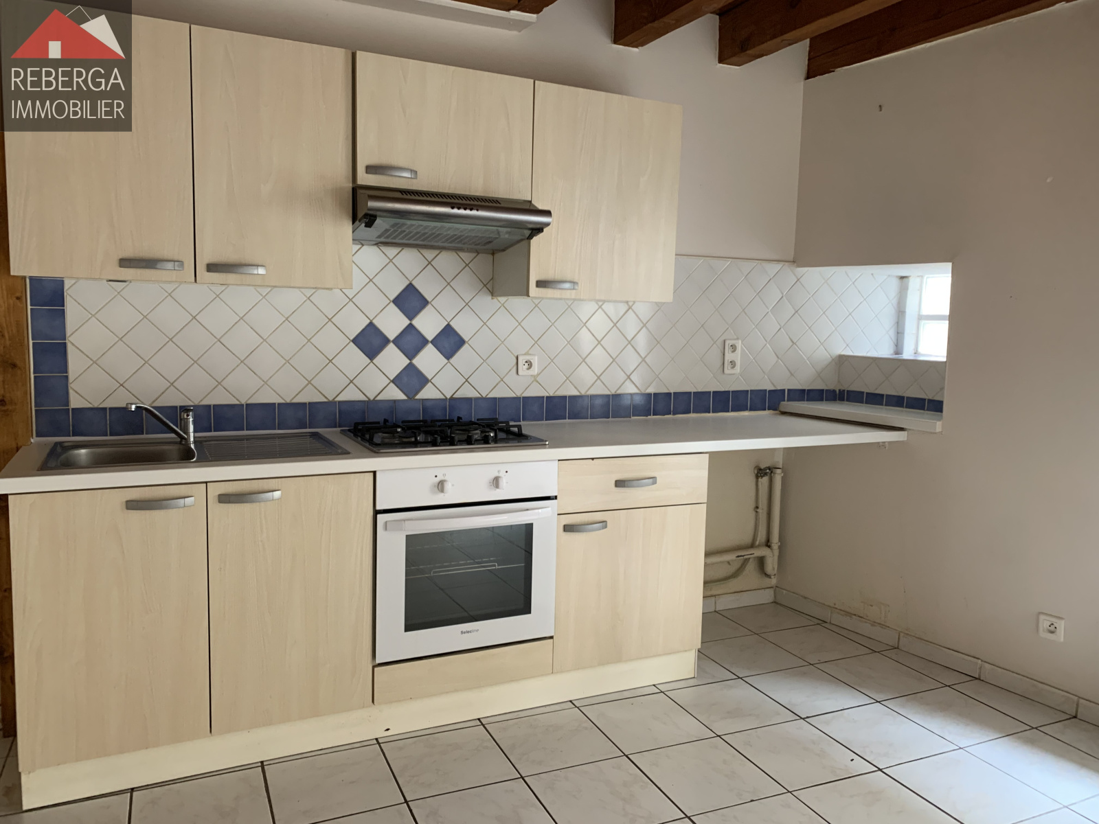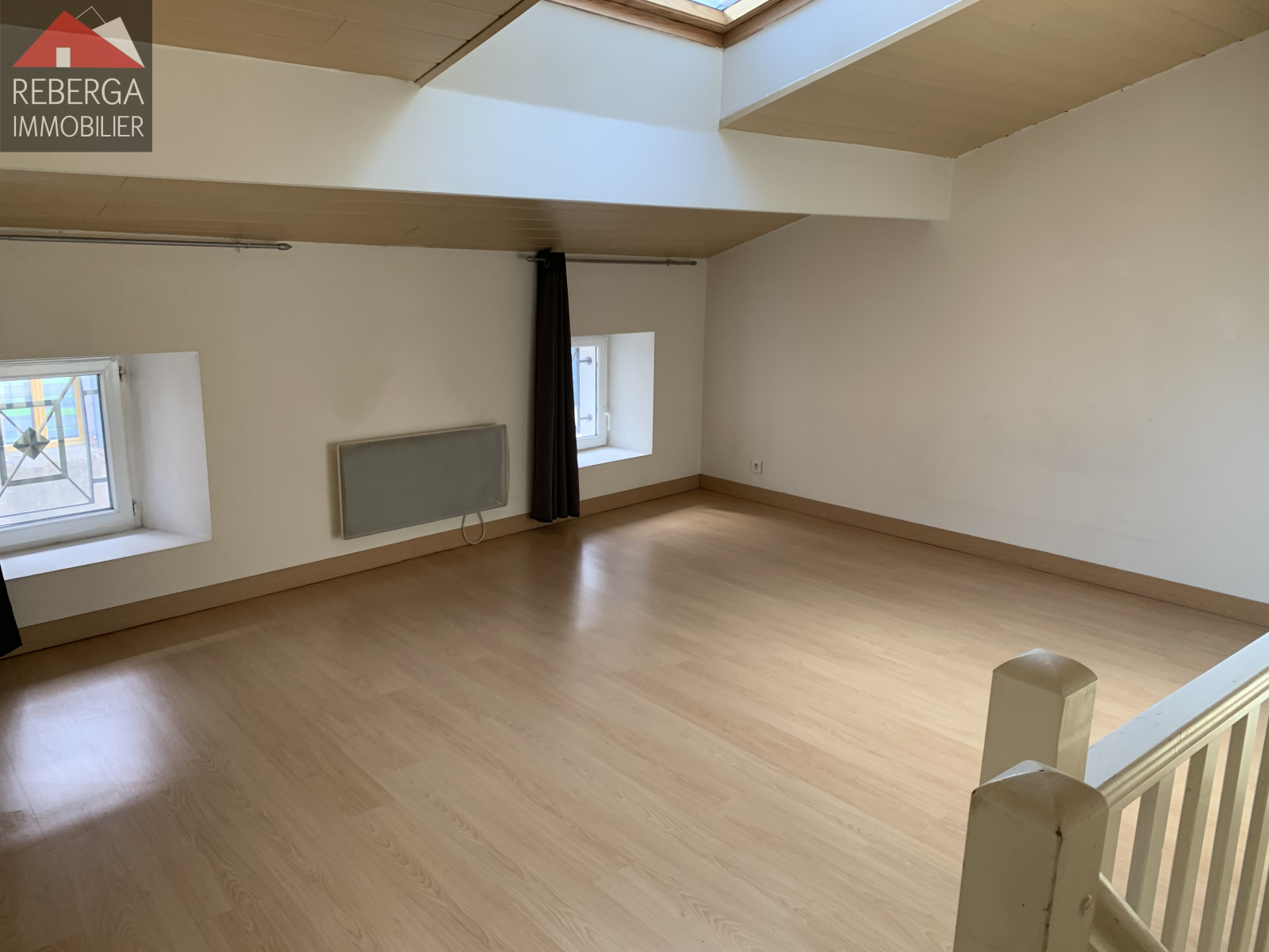 Maison T2 bis à Mazamet. Maison de ville située à Mazamet, composée au rez-de-chaussée d’un séjour avec cuisine ouverte, aménagée et équipée (hotte, plaque et four). Au premier étage, un grand dégagement pouvant servir de bureau ou de chambre donne accès à la salle d’eau. Au second étage, une grande chambre.