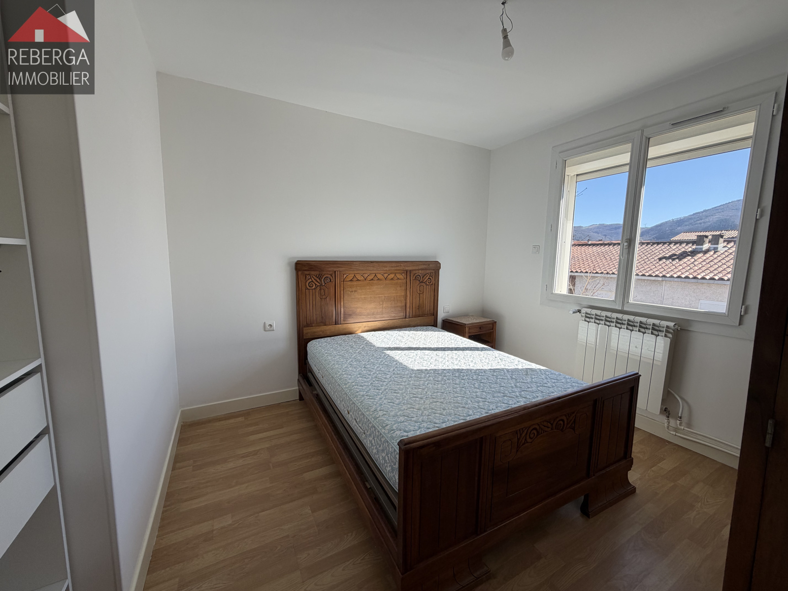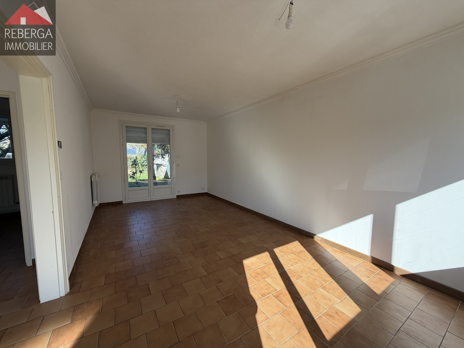 Agréable maison avec jardin située à Aussillon, dans un quartier résidentiel calme. Elle se compose d’une entrée desservant un vaste séjour traversant, donnant sur une terrasse et le jardin, d’une cuisine séparée et équipée (hotte, plaque de cuisson, four, micro-ondes), d’un WC ainsi que d’un grand garage avec un acces à une cave.