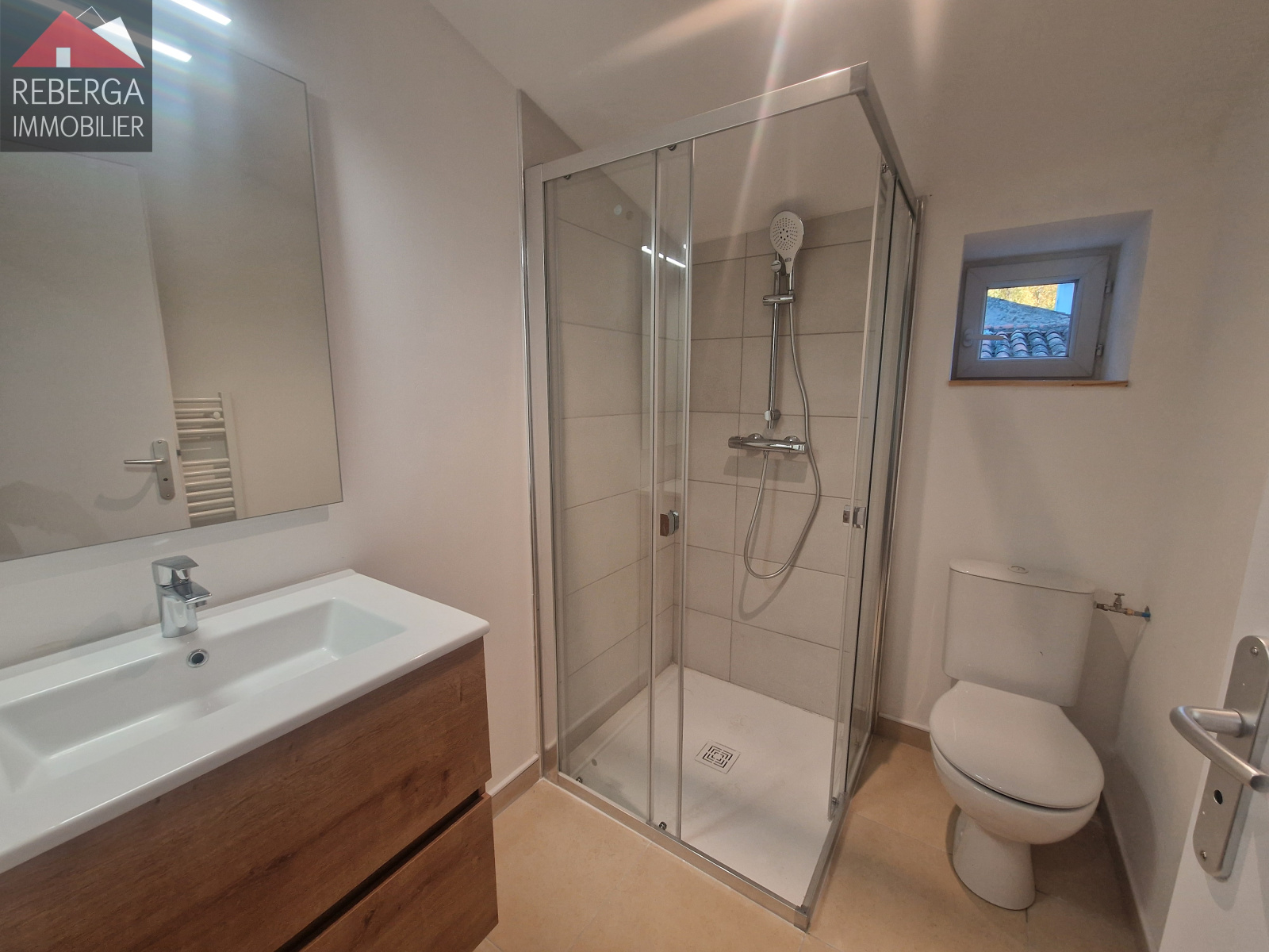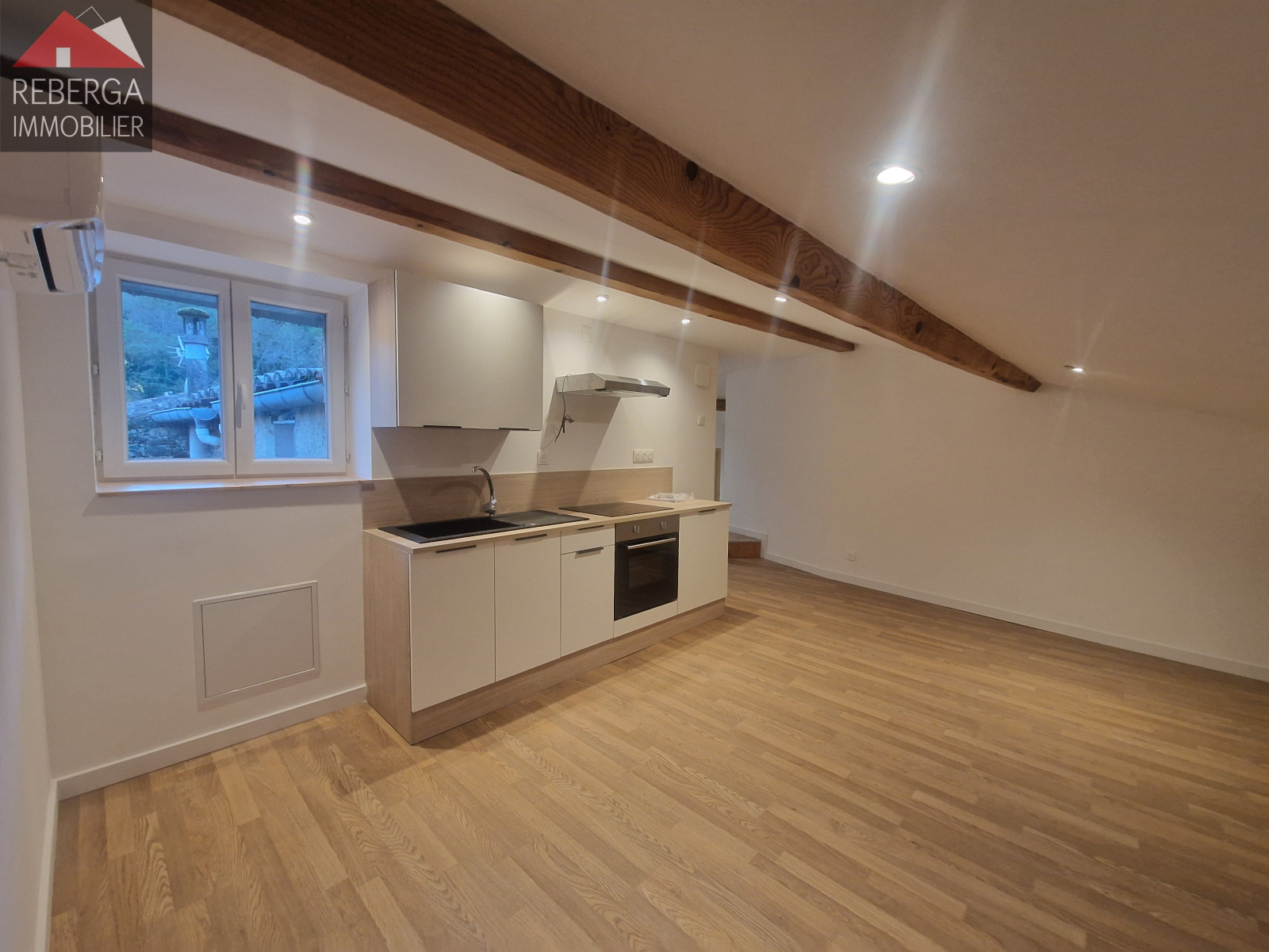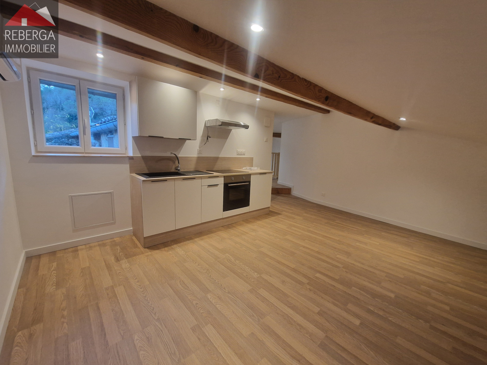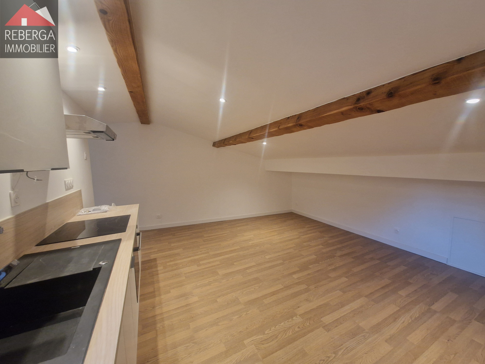 Studio à Burlats au deuxième et dernier étage entièrement rénové : pièces de vie avec coin cuisine équipée et aménagée, salle d'eau avec toilette. Disponible immédiatement.