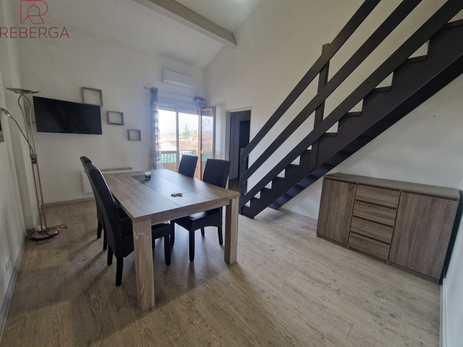 Appartement, au deuxième et dernier étage, comprenant : entrée avec placard de rangement, séjour en duplex donnant sur le balcon, une chambre avec placard, cuisine équipée et séparée, une salle de bain et un toillette séparé. Le bien est loué meublé. Chauffage par climatisation réversible et convecteurs. Une place de parking complète ce bien.