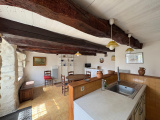 En rez de chaussée, une salle à manger avec cuisine ouverte, un cellier (avec wc). Au premier étage, un salon (avec accès terrasse), une chambre et une salle d’eau avec wc. Au deuxième étage, deux chambres sous mansardes.