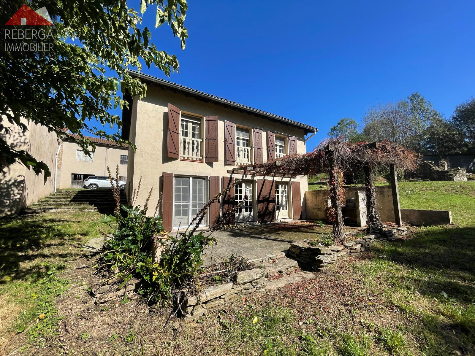 Charmante maison de campagne d'environ 125m² avec un vaste séjour (poele à bois), une cuisine séparée avec celier. A l'étage trois chambres spacieuses, une salle de bain et une salle d'eau. Terrasse ombragée offrant une vue sur un cadre verdoyant.