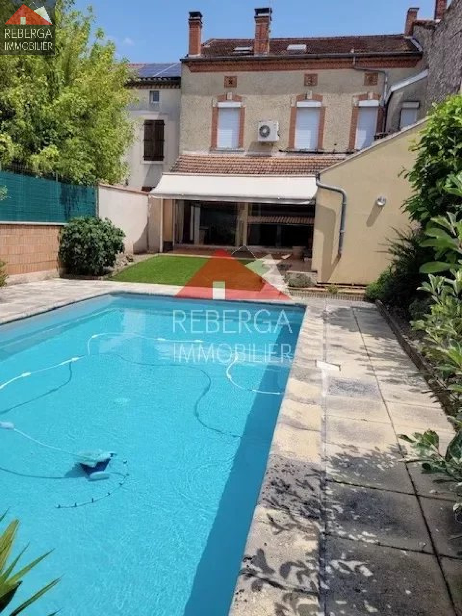 ALBI Centre, belle maison de ville bourgeoise de 288m² en surface utile, avec garage et jardin : entrée, salon salle a manger traversant donnant sur la terrasse et le jardin avec piscine (dépendances), cuisine aménagée et équipée. au premier étage 2 chambres, une salle d'eau, une suite parentale avec dressing et salle de bains, un bureau. Au second deux chambres supplémentaires, une salle d'eau et un espace grenier a aménager (salle de sport, salle de cinéma etc etc). Nombreux rangements sur l'ensemble des niveaux. Doubles vitrages, volets roulants électriques, chauffage central au gaz de ville récent, climatisation réversible. Produit rare!!!