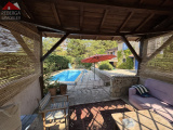 L'espace piscine est très confortable et intime grâce à une tonnelle ombragée