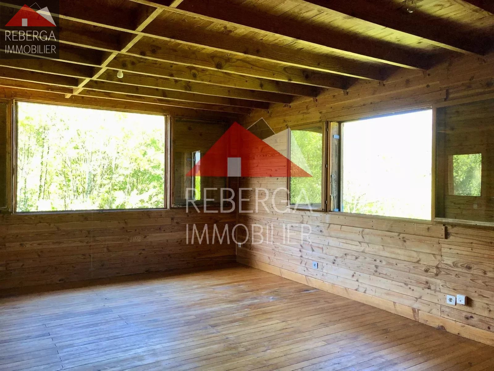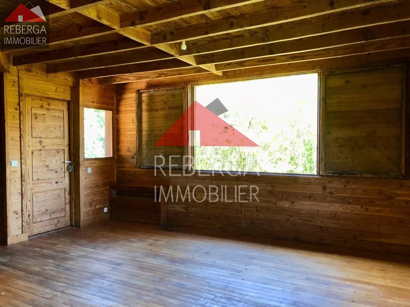 Sur les hauteurs du Pont de l'Arn, chalet entièrement en bois : salon avec espace cuisine (terrasse plein sud), 3 chambres, salle de bains, garage. Cave . Possibilité d'installer un poële à bois
