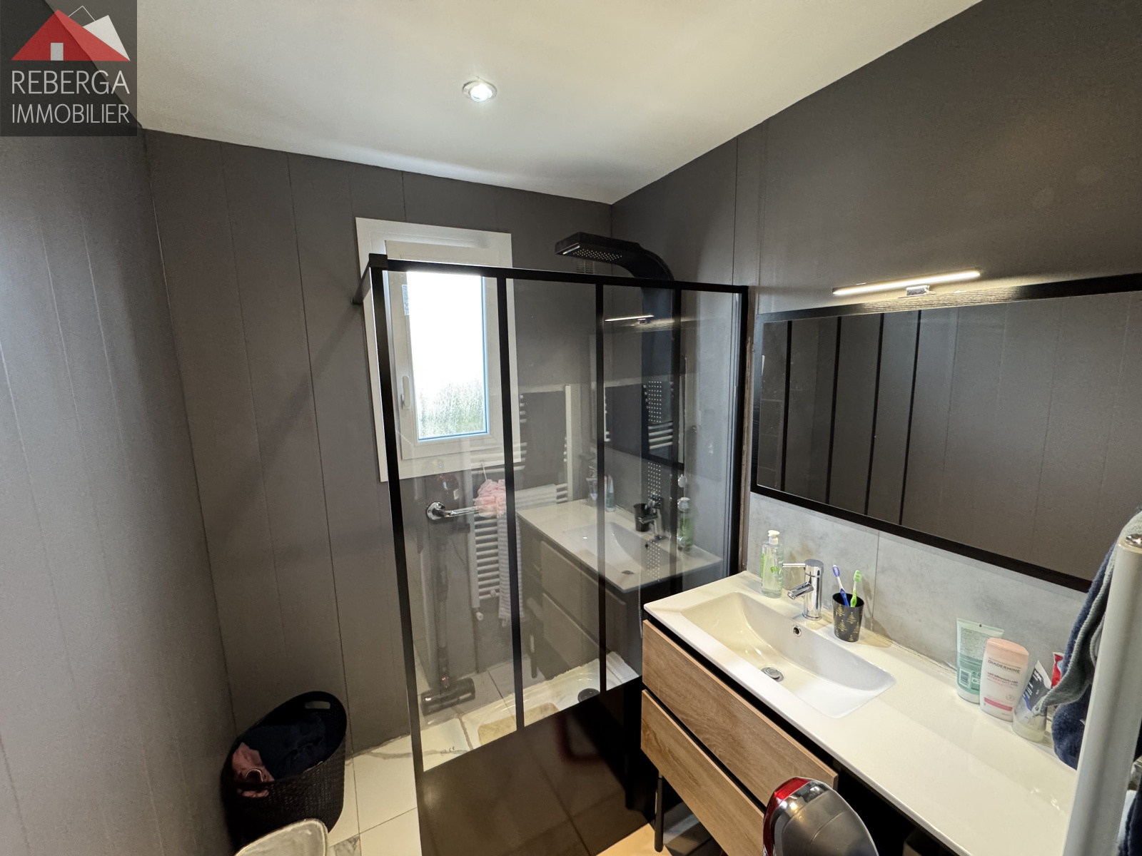 Entrée, séjour, salon/salle à manger avec un accès sur le jardin (insert et climatisation reversible), cuisine aménagée et équipée neuve, salle d'eau, 3 chambres.