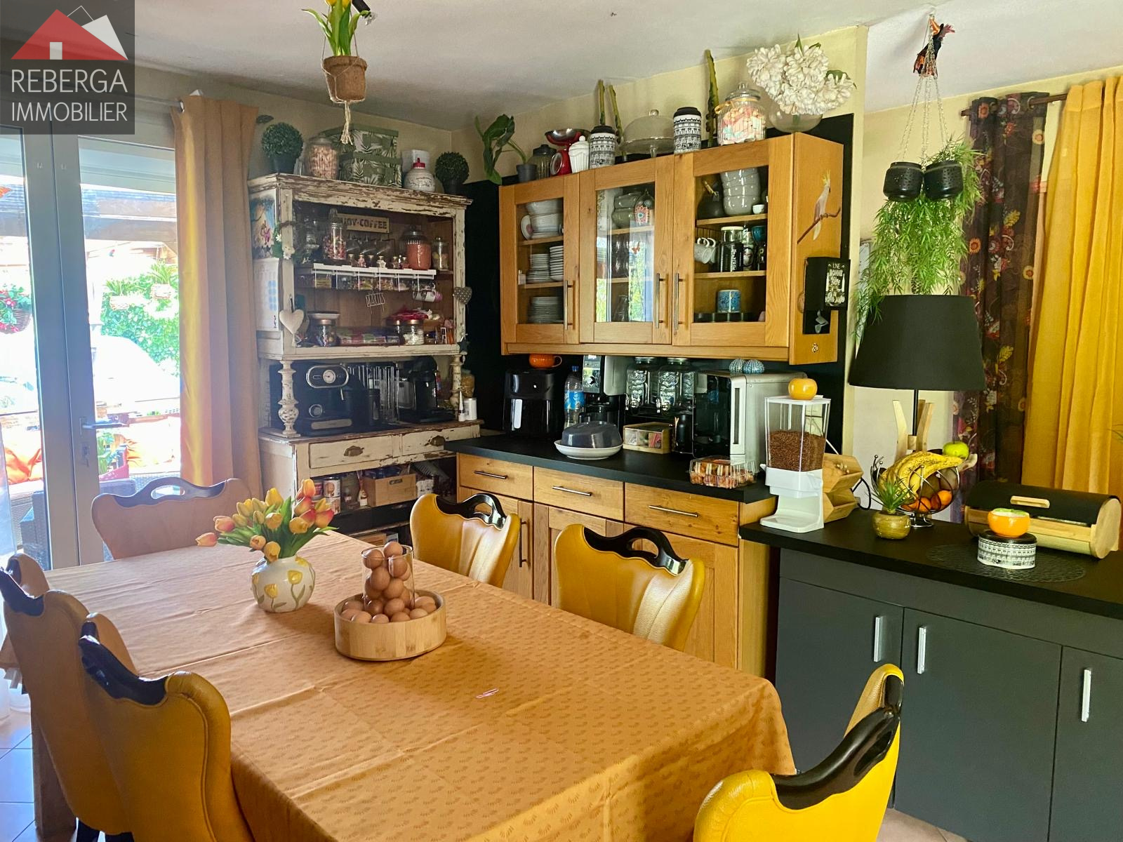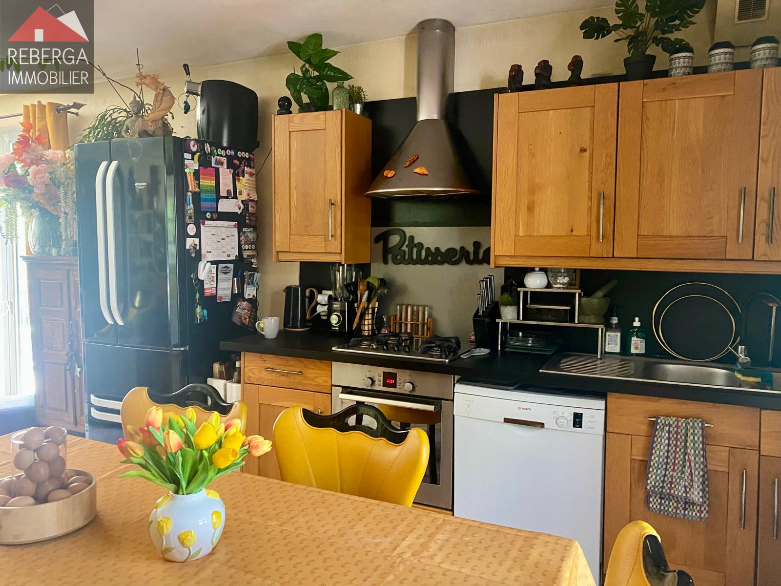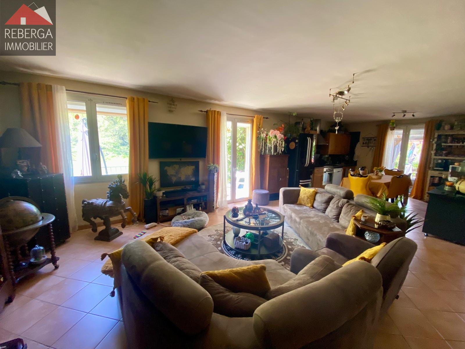 Entrée, la cuisine est ouverte sur le salon (poële bois) avec accès direct sur le balcon plein sud, 4 chambres, grand bureau, salle d'eau