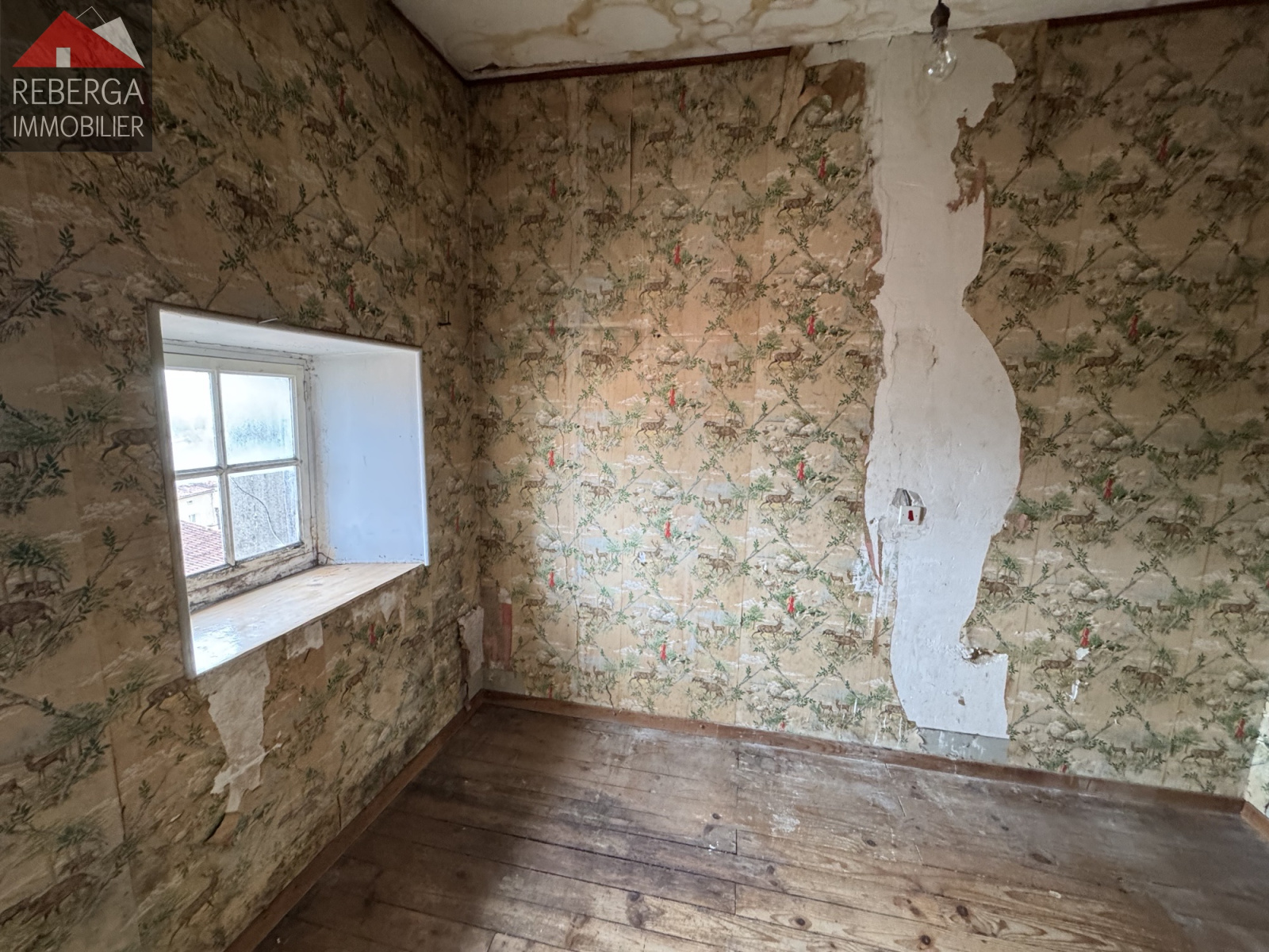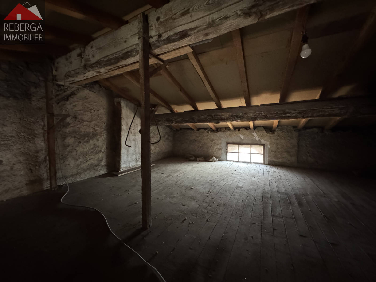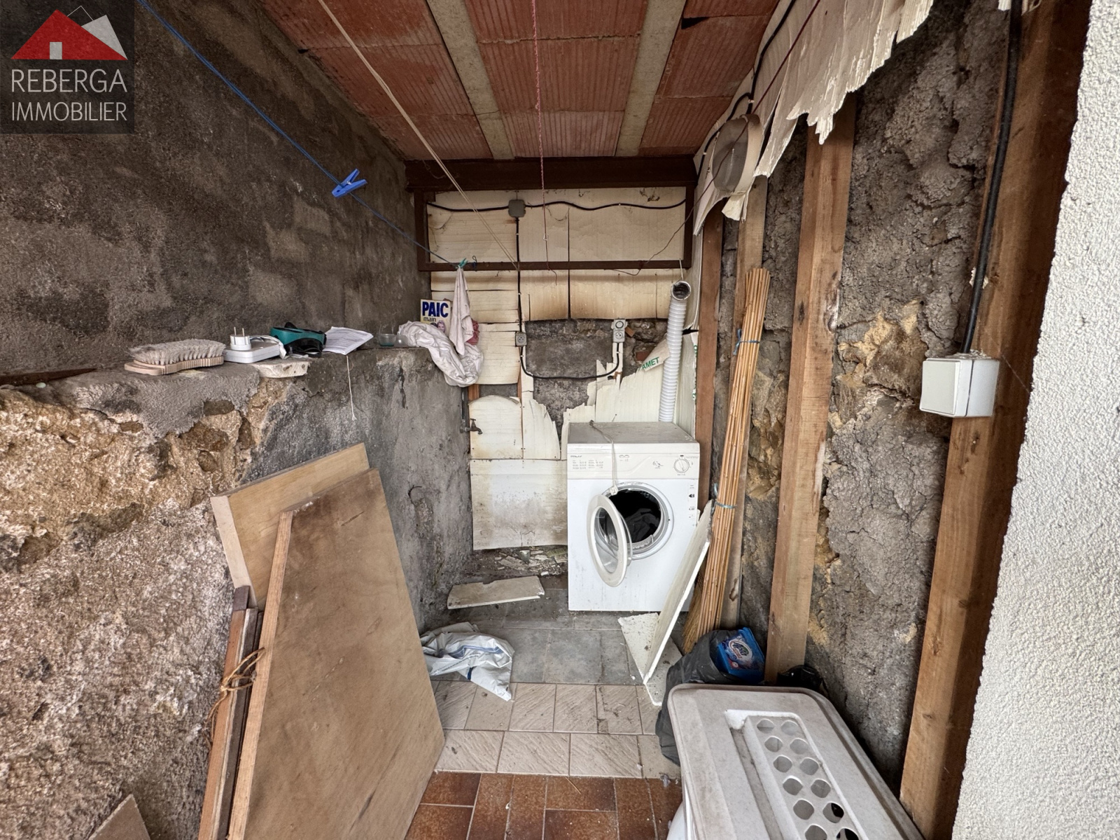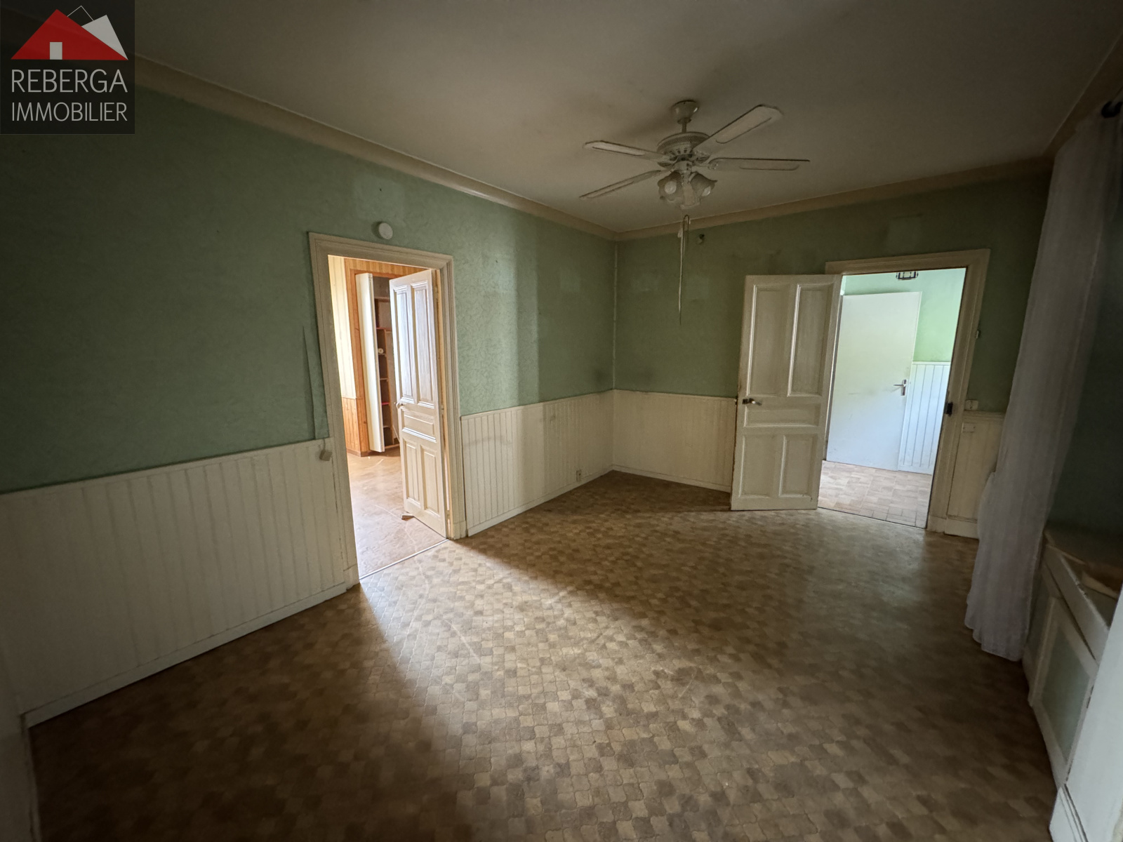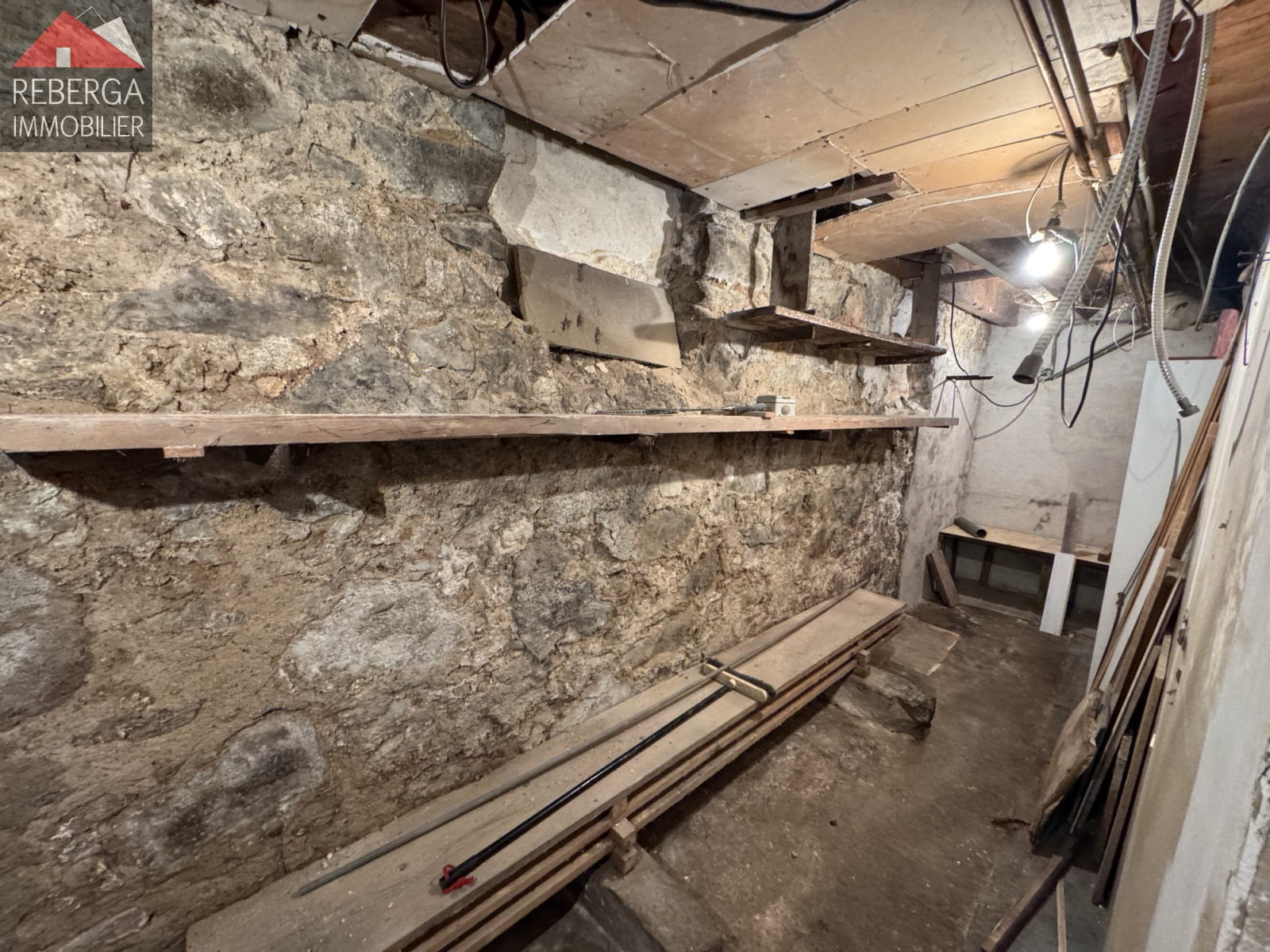 Maison de ville d'environ 80m² habitables sur 2 niveaux avec grenier aménageable et dependances en sous sol : entrée, sejour salle à manger, cuisine aménagée, véranda avec cheminée, une chambre.