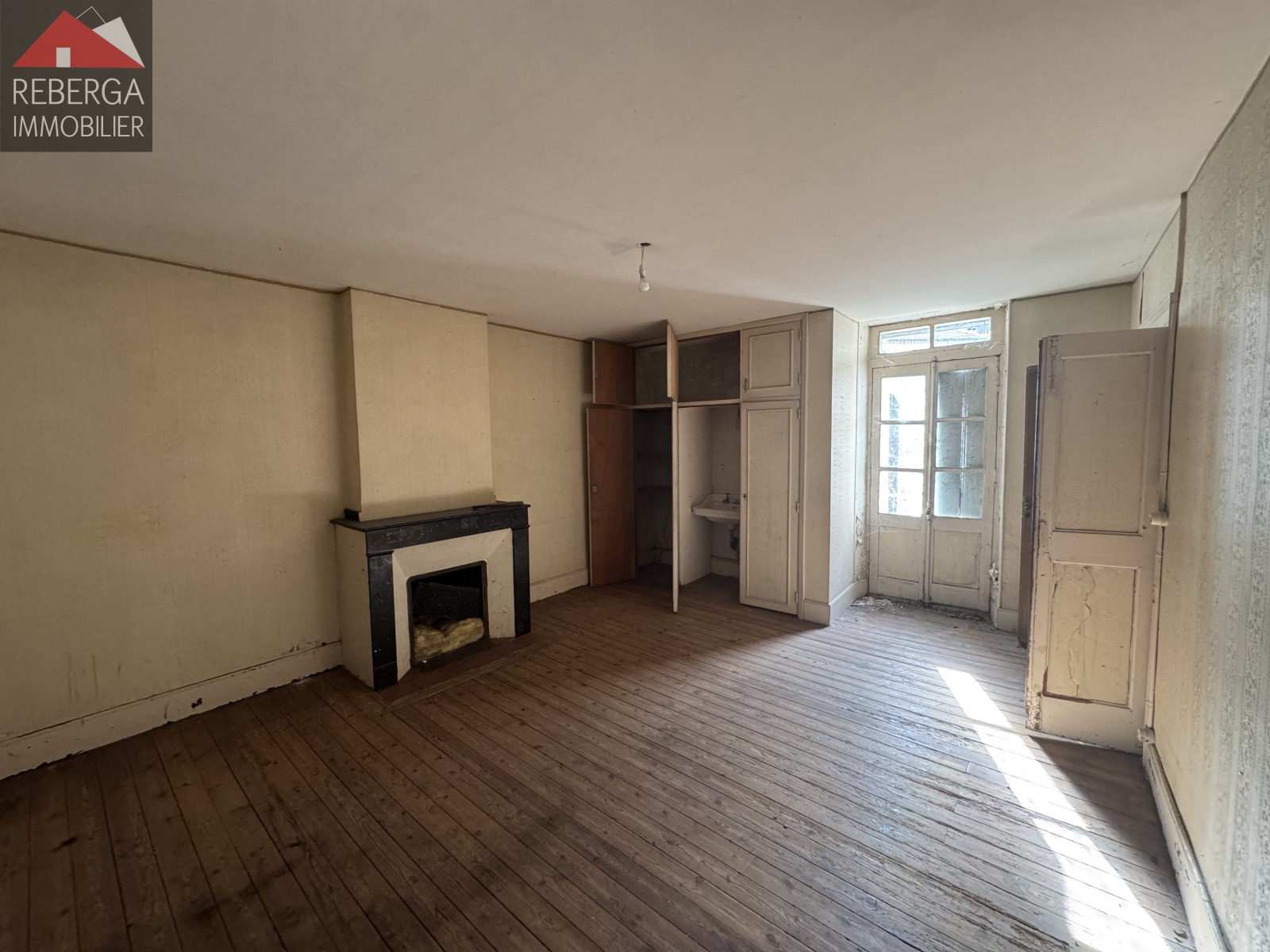 Maison de ville d'environ 90m² a restaurer entierement : entrée, sejour salle à manger, cuisine donnant sur une cour, à l'étage 3 chambres et une salle de bains, grenier partiellement aménageable.
