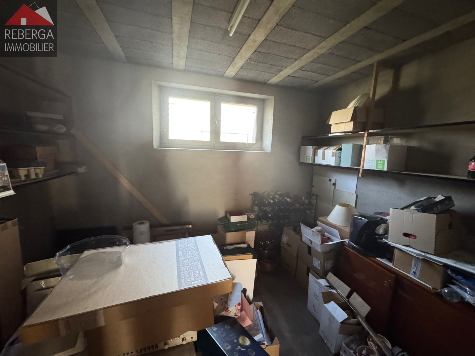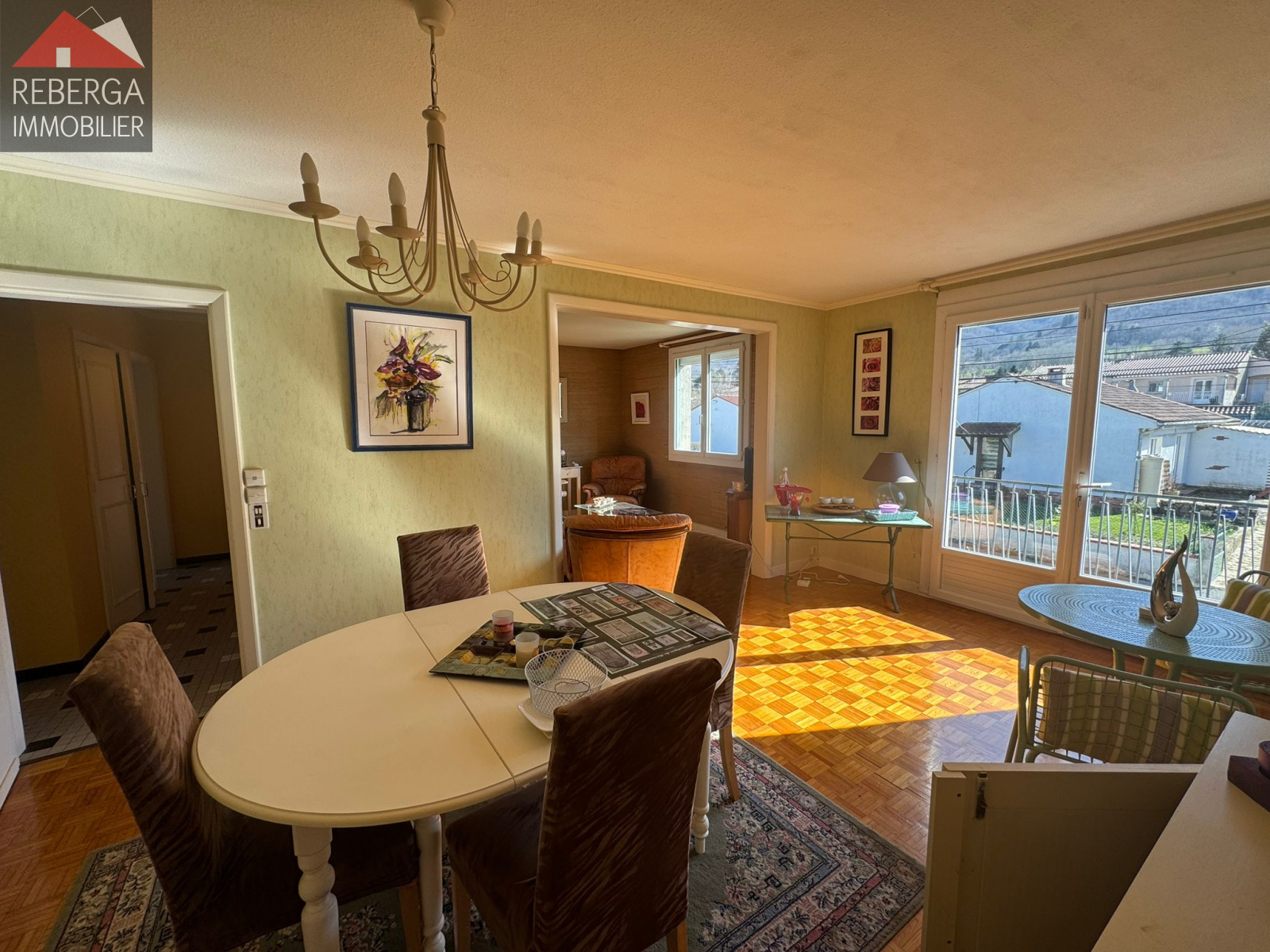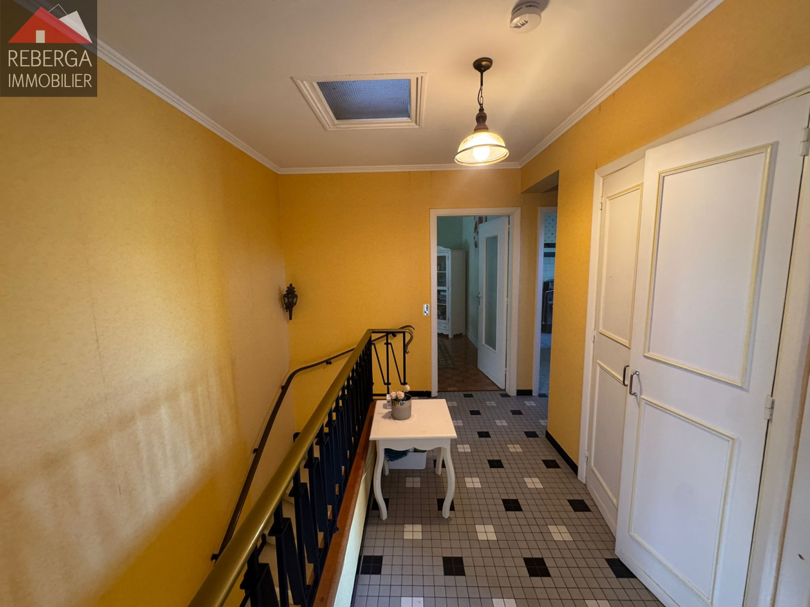 Composée d'un double séjour avec blacon, une cuisine séparée, deux chambres, une salle de bain et un wc. Au rez de chaussée, garage (portail électrique), une buanderie, et une chambre (avec un point d'eau).