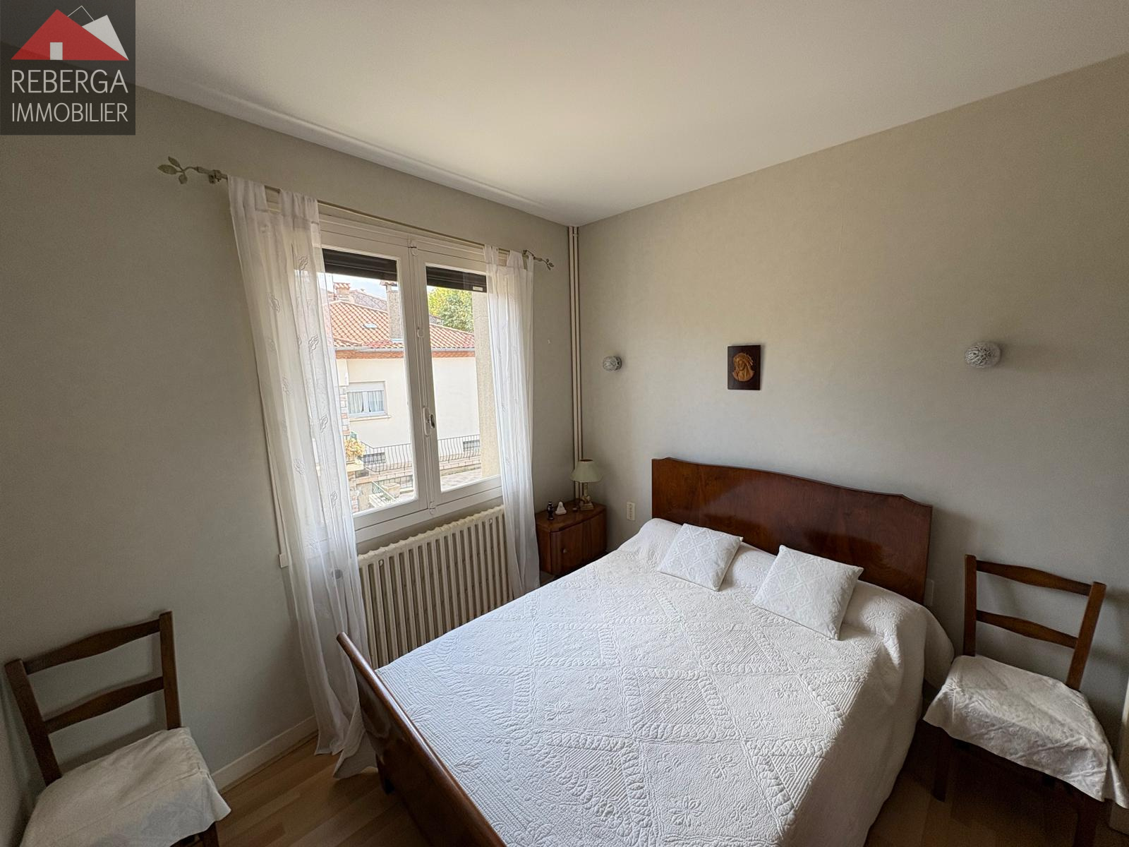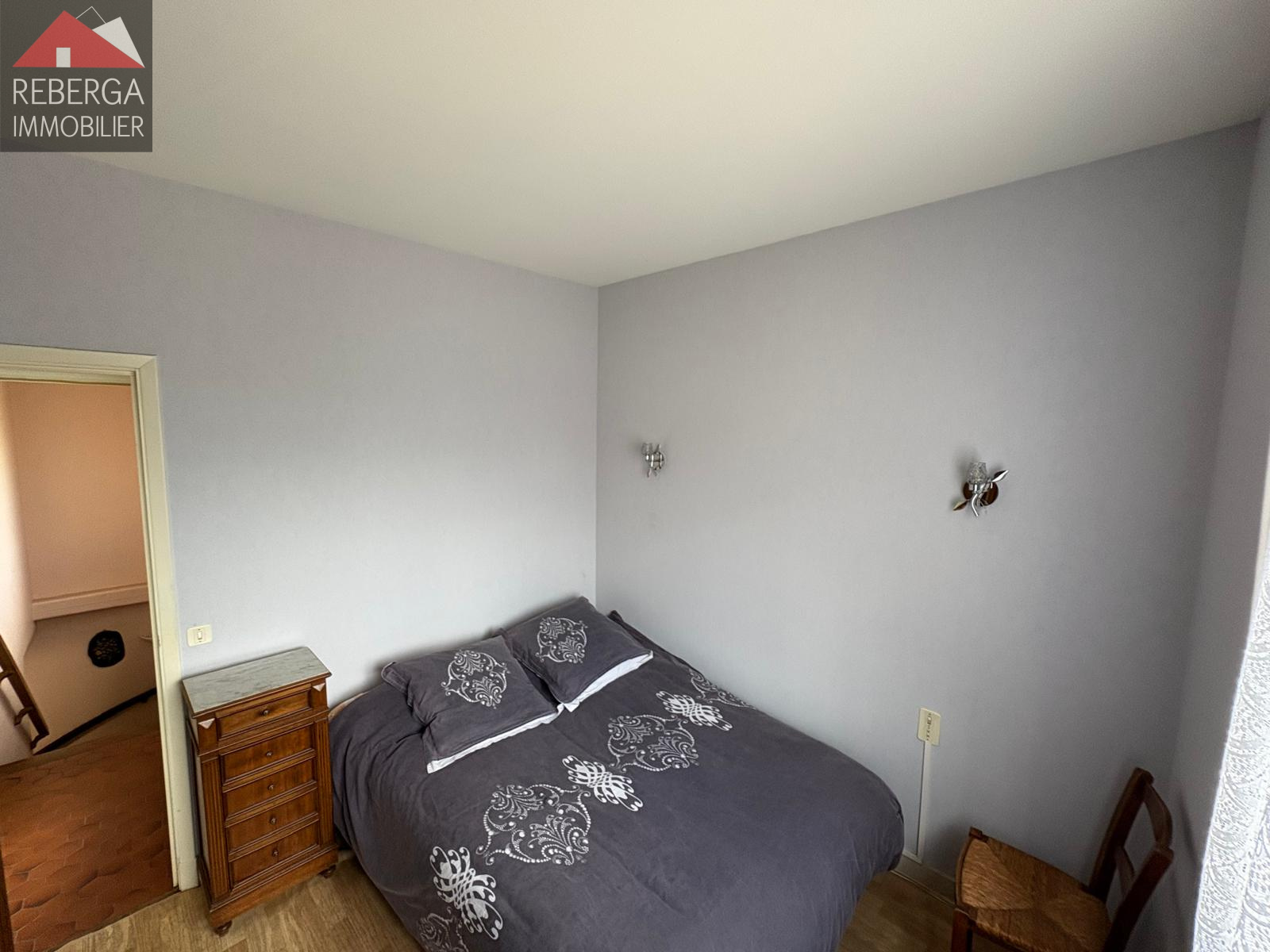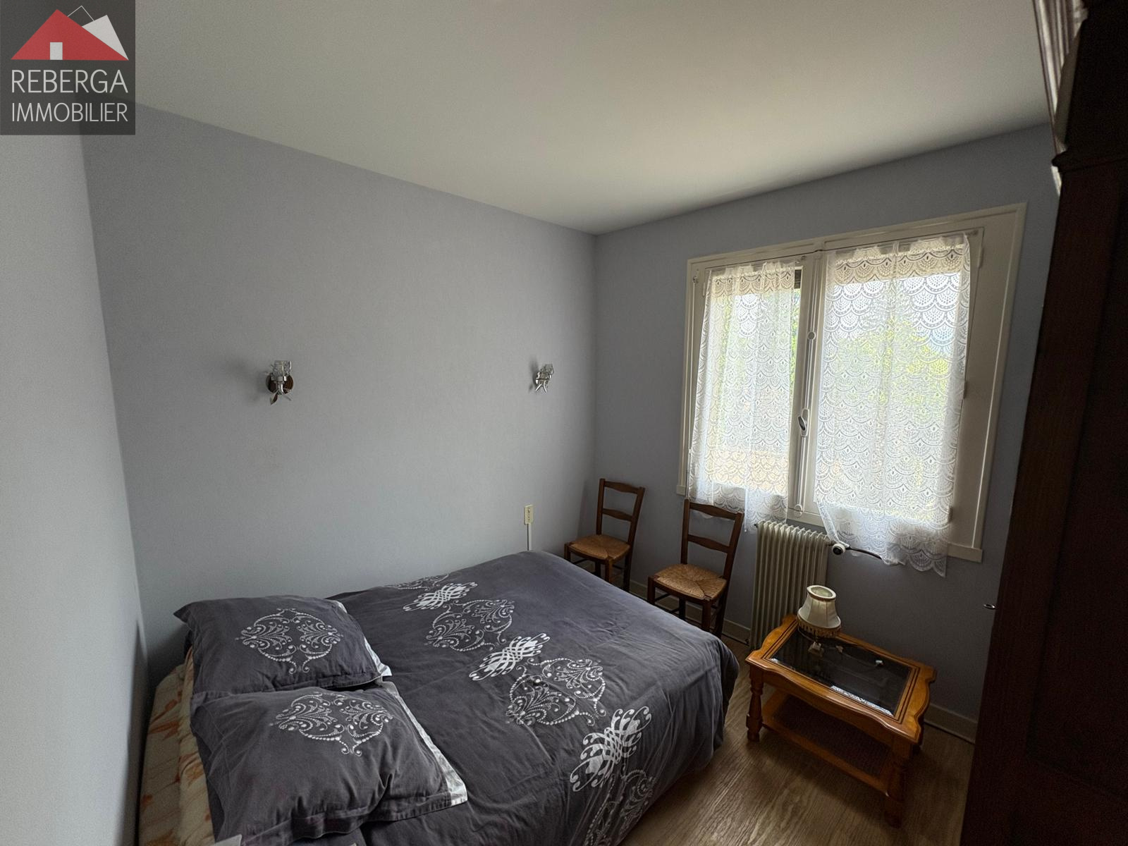 Composée comme suit à l'étage : un séjour, une cuisine séparée, un celier, trois chambres, un wc, une salle d'eau. A l'arrière une terrasse offre une vue dégagée sur la montagne. Au rez de chaussée, un grand garage (portail électrique) pouvant accueillir facilement deux véhicules, une arrière cuisine / buanderie avec cave à vins.