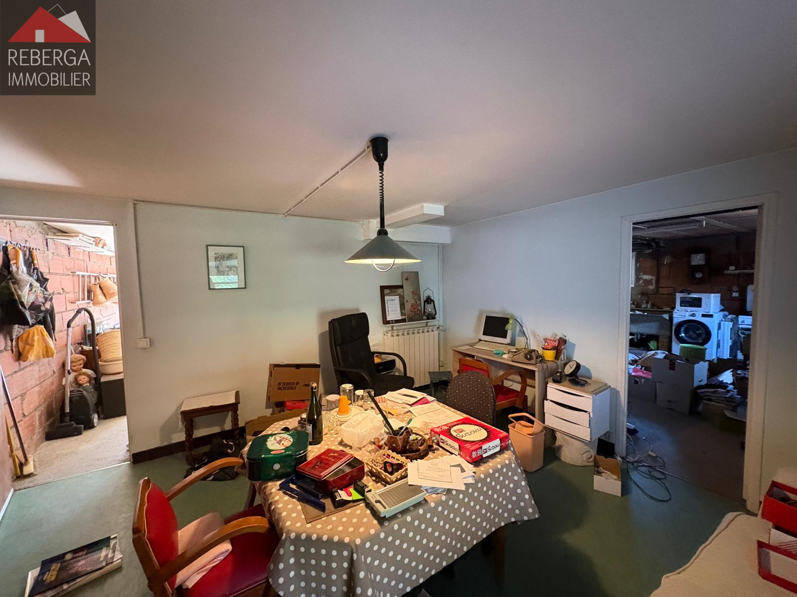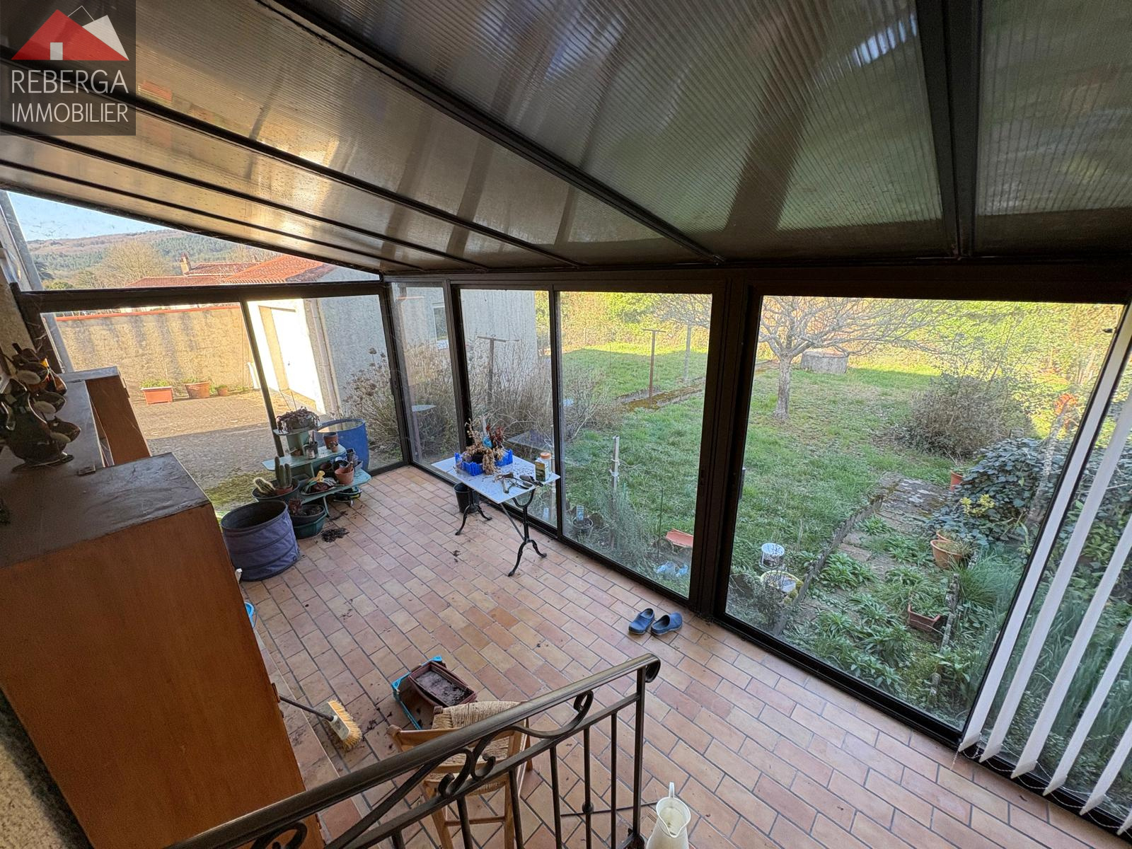 Composée d'un double séjour, une cuisine séparée, trois chambres, une salle d'eau et un wc. Au rez de chaussée, garage (portail électrique), une cave, un atelier, un wc, un bureau avec accès à la véranda.