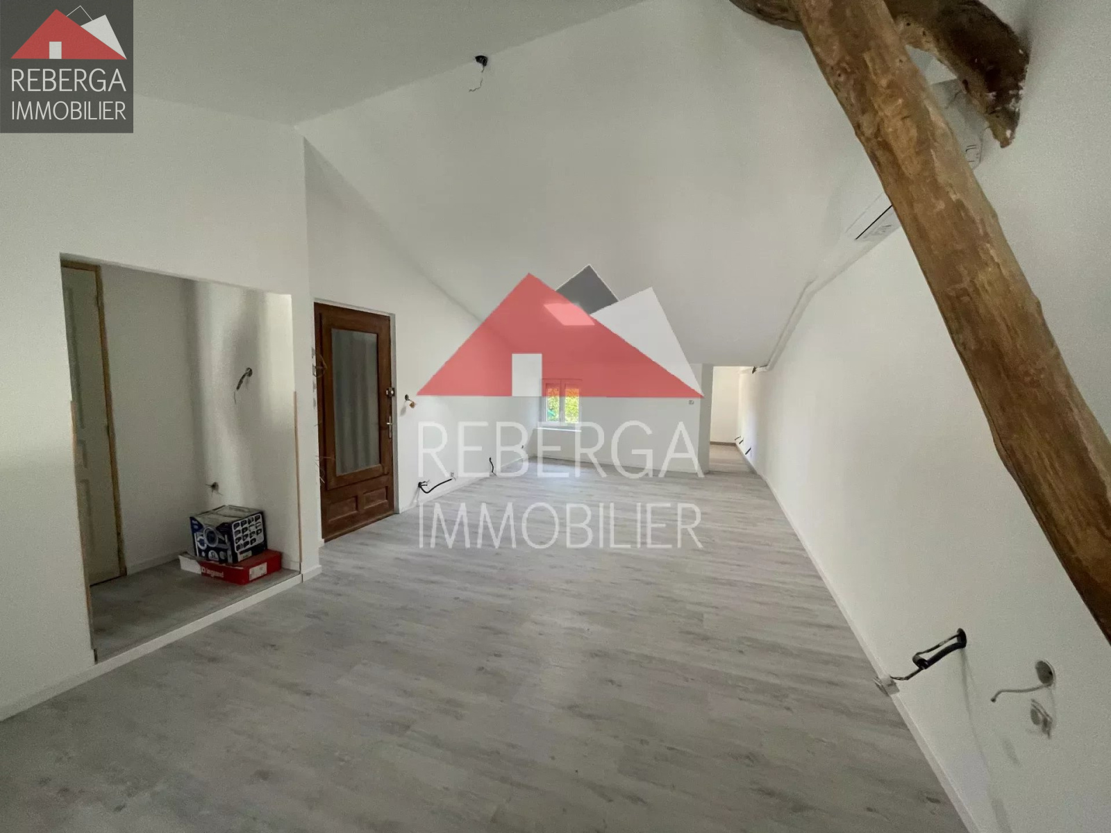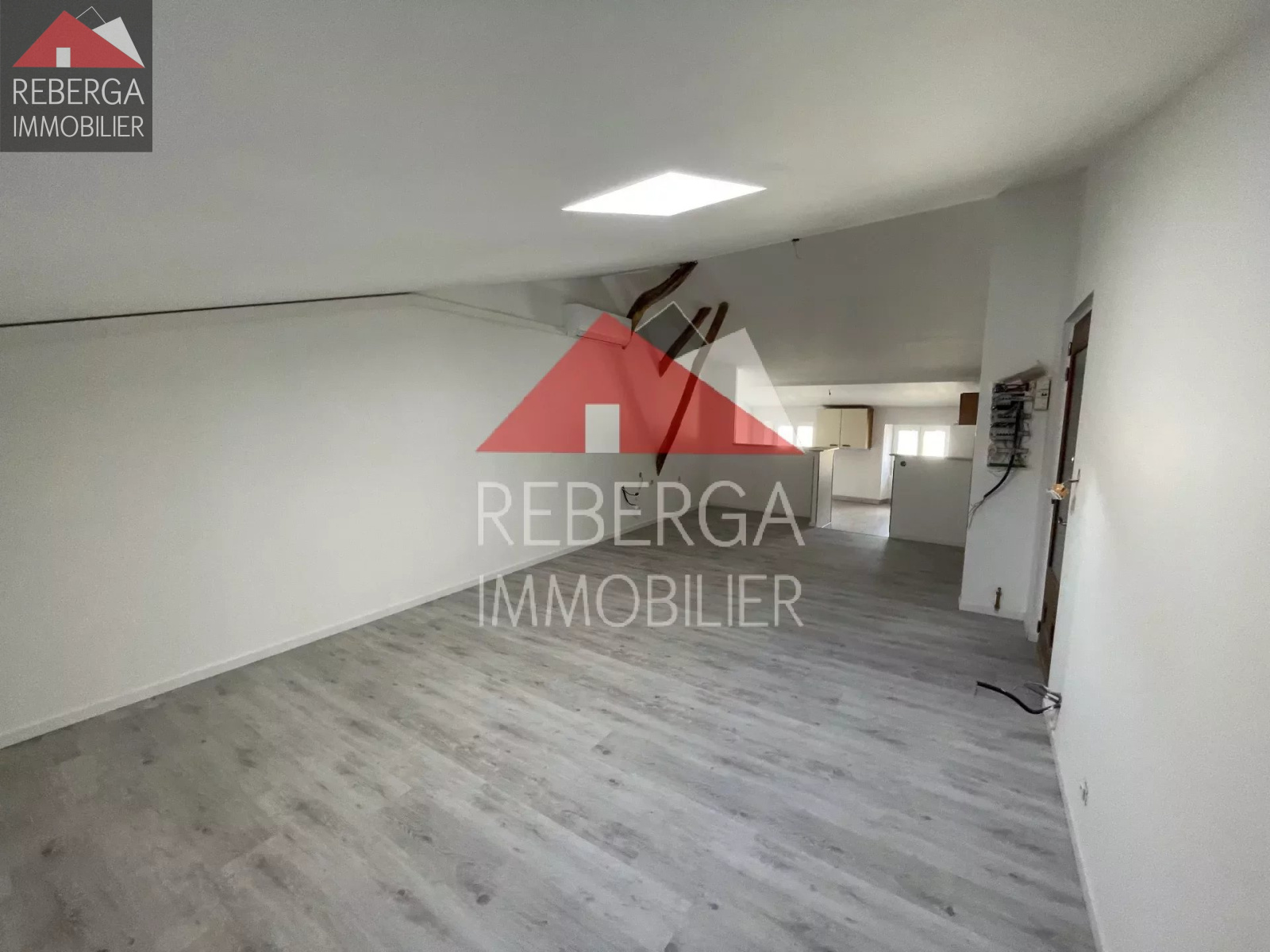 T2 Bis, composé d'un vaste double séjour avec cuisine ouverte, une salle d'eau, une chambre et un bureau. Climatisation réversible. Non-loué actuellement (loyer : 420€/hc).