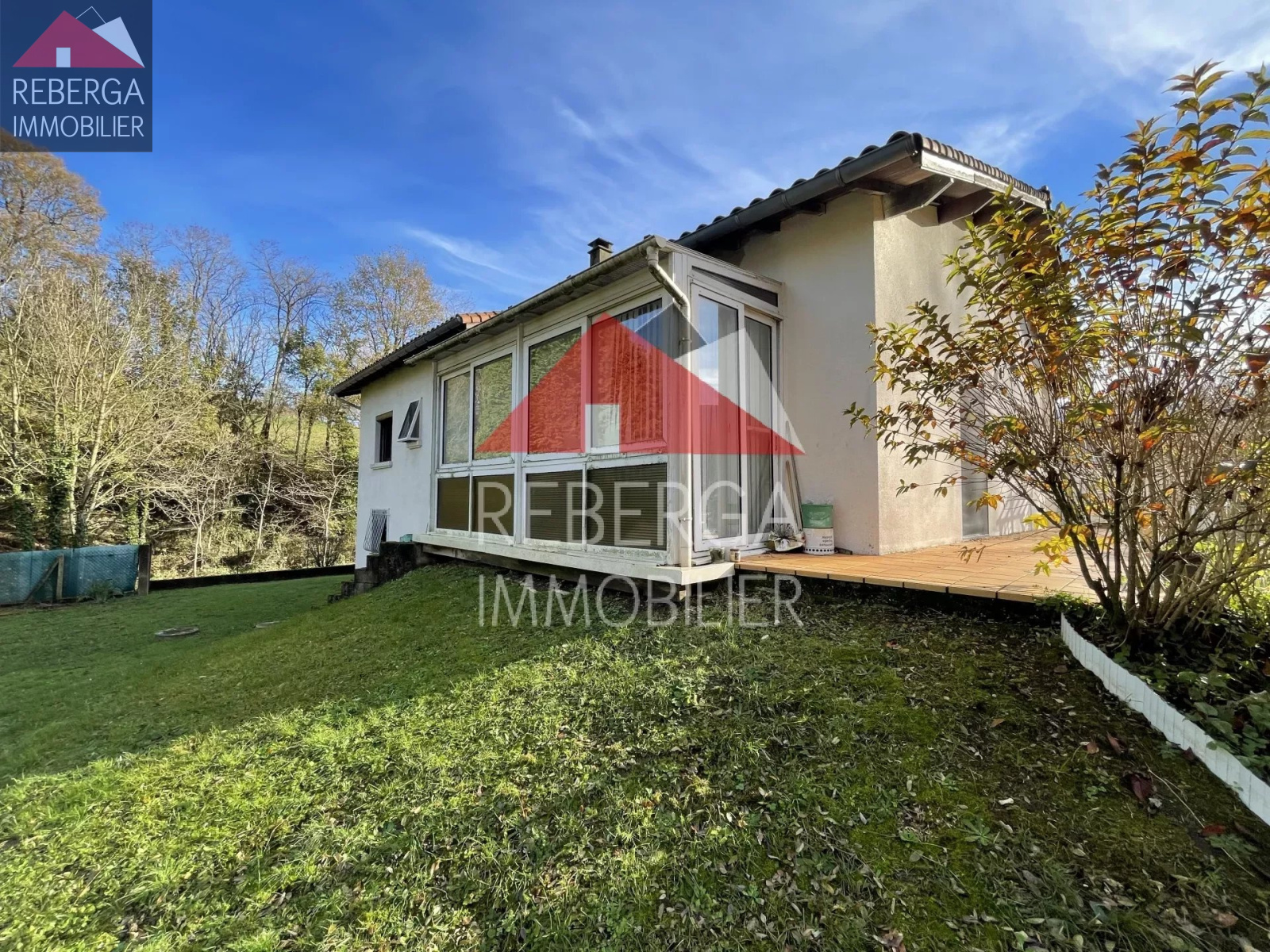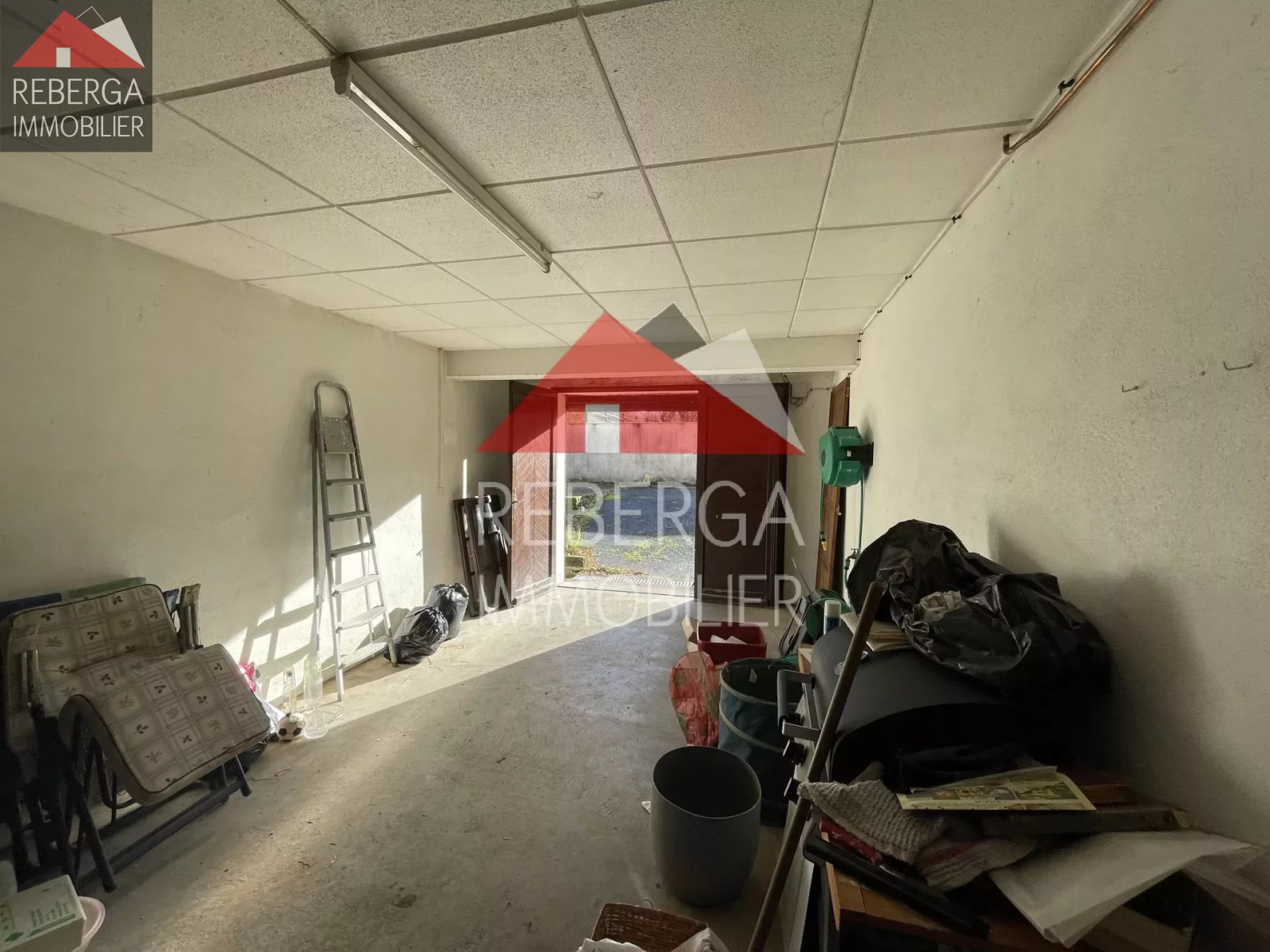 SOUS COMPROMIS. Maison d'environ 120m² sur sous sol avec garage (portail automatique) et jardin clos et arboré de 1600m². Hall d'entrée distribuant la cuisine séparée, le salon-salle à manger (insert) ouvrant sur la véranda. Trois chambres, une salle de bains Au sous-sol, une pièce à aménager, une buanderie, une cuisine d'été, une salle d'eau. L'arrière de la maison offre une vue sur la voie verte.