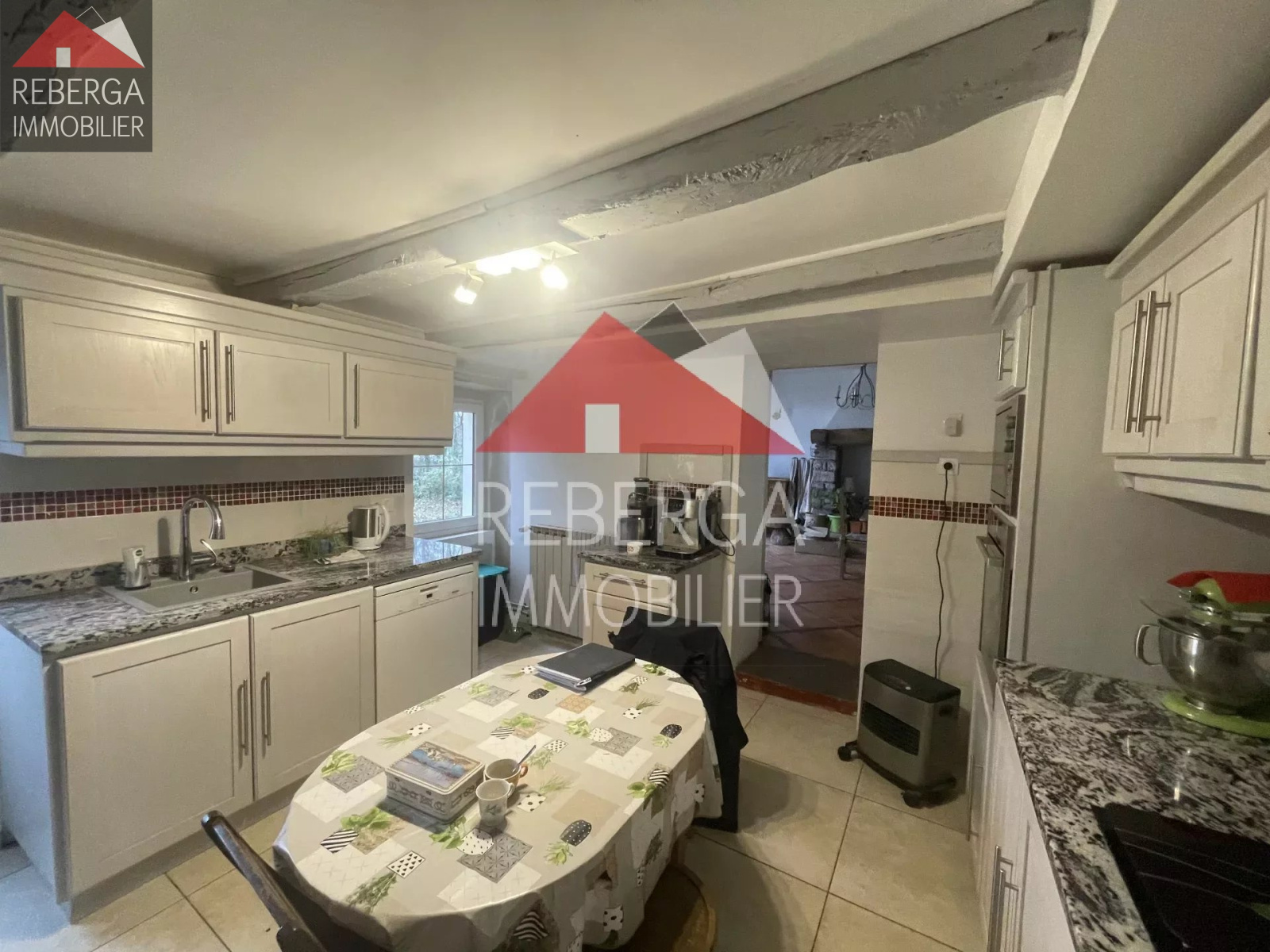 En plein c?ur du Parc Naturel Régional du Haut-Languedoc, situé dans le village d'Anglès. Maison d'environ 200m² sur un terrain de 9600m² entièrement clos et arboré. La maison se compose comme suit : l'entrée principale se fait par la cuisine, distribuant sur un salon avec mezzanine et une salle à manger, En rez de chaussée on retrouve une chambre disposant de sa propre salle d'eau avec wc. A l'étage, on retrouve deux chambres, un bureau et une suite parentale disposant de sa propre salle de bain avec wc. A l'extérieur, une dépendance avec garage.