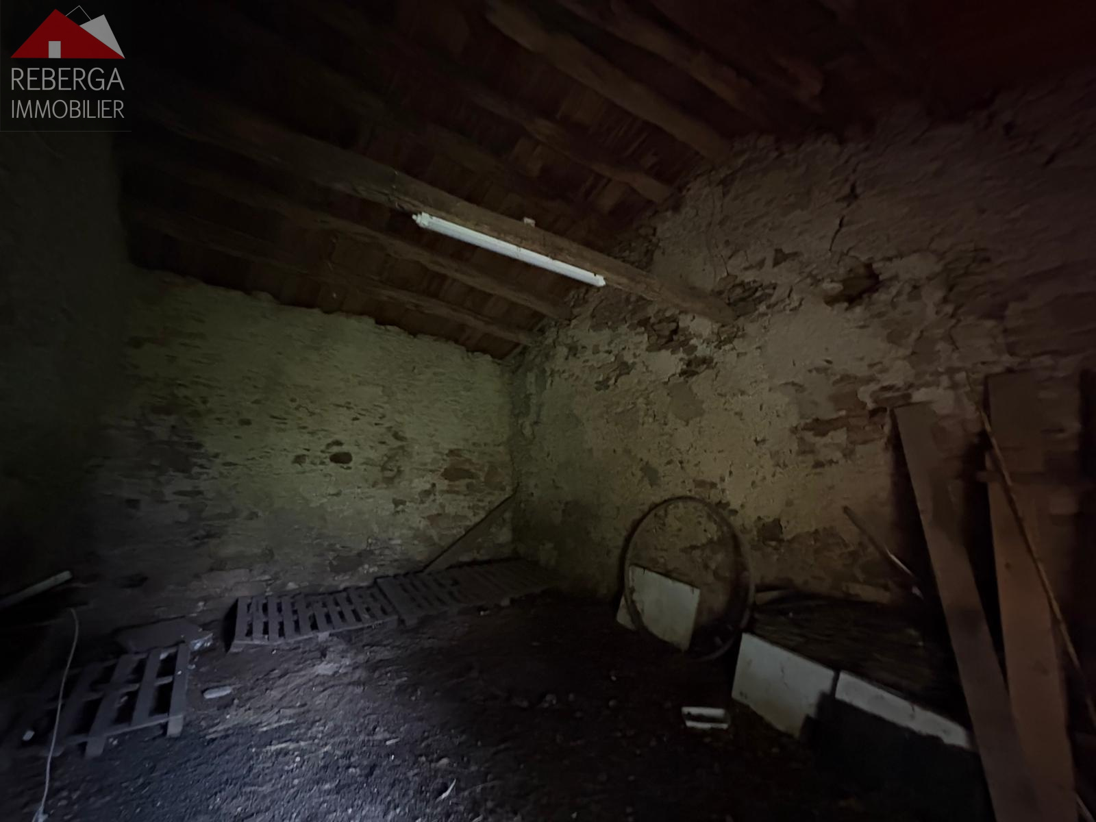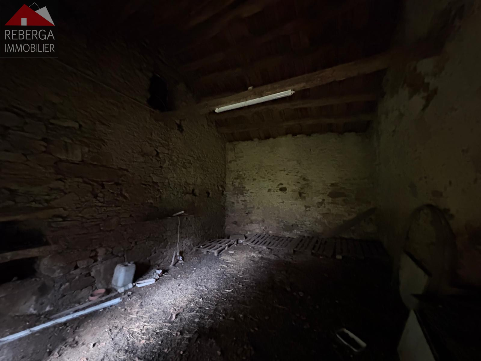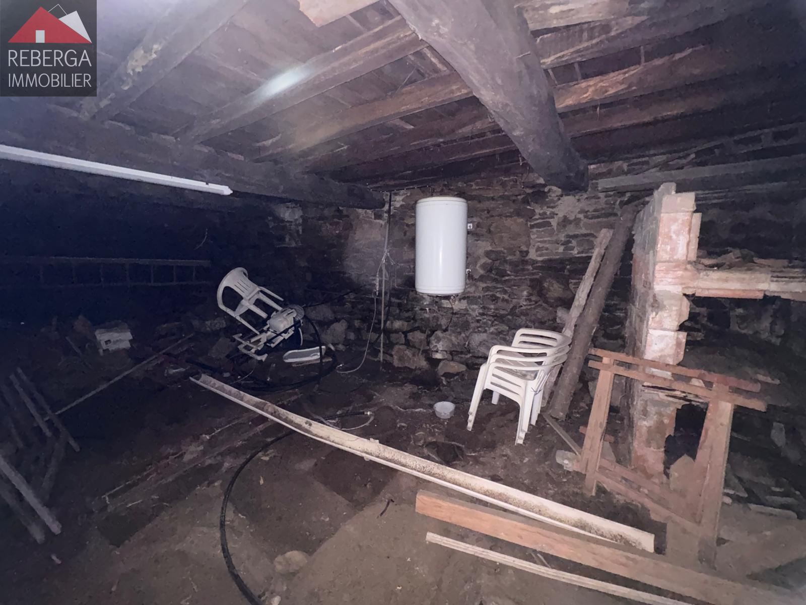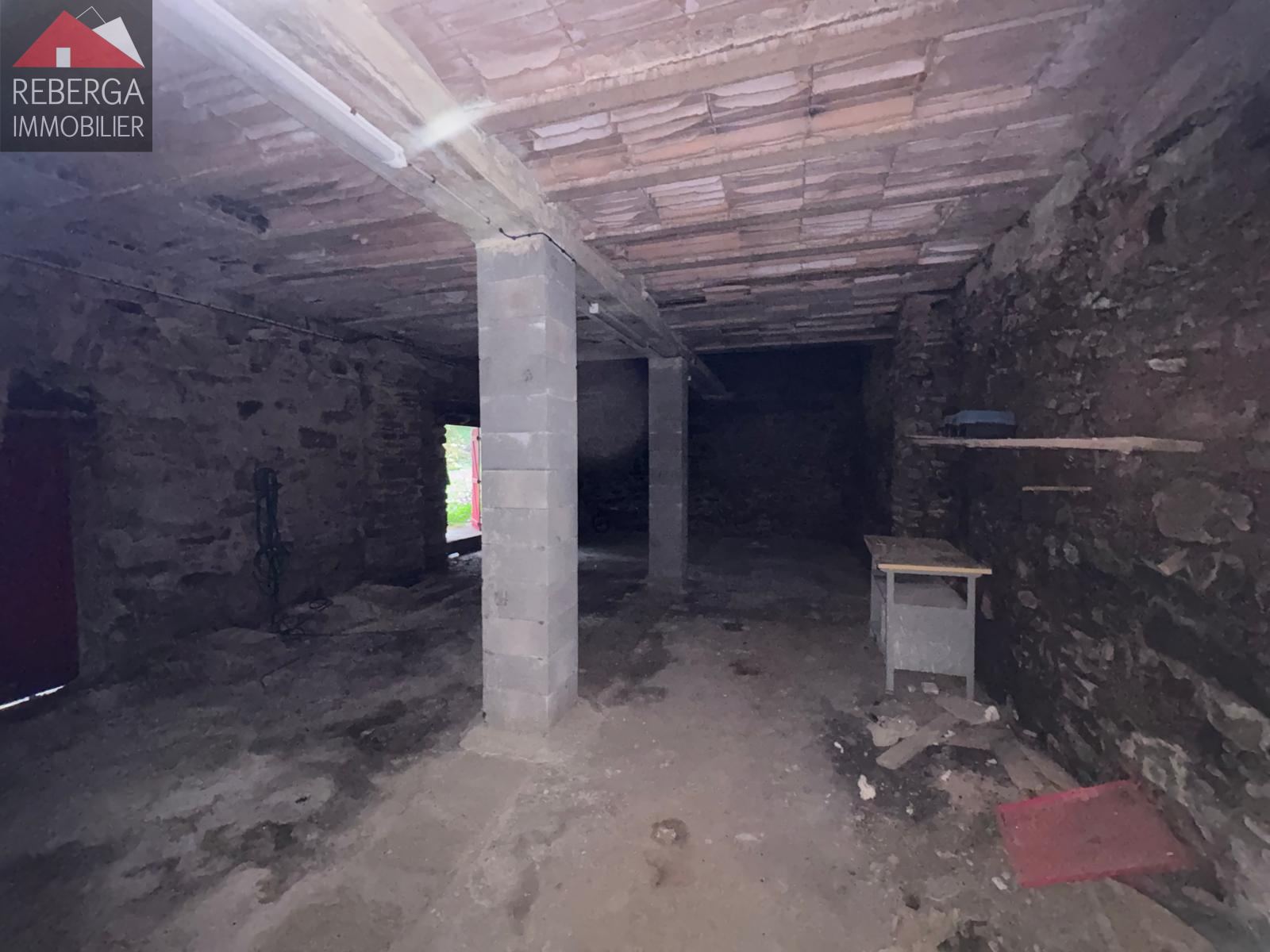 En rez-de-chaussée, une ancienne étable, deux caves séparées et un cabinet de toilette. Une dépendance d'environ 15m². Un grand garage attenant à la batisse principale.