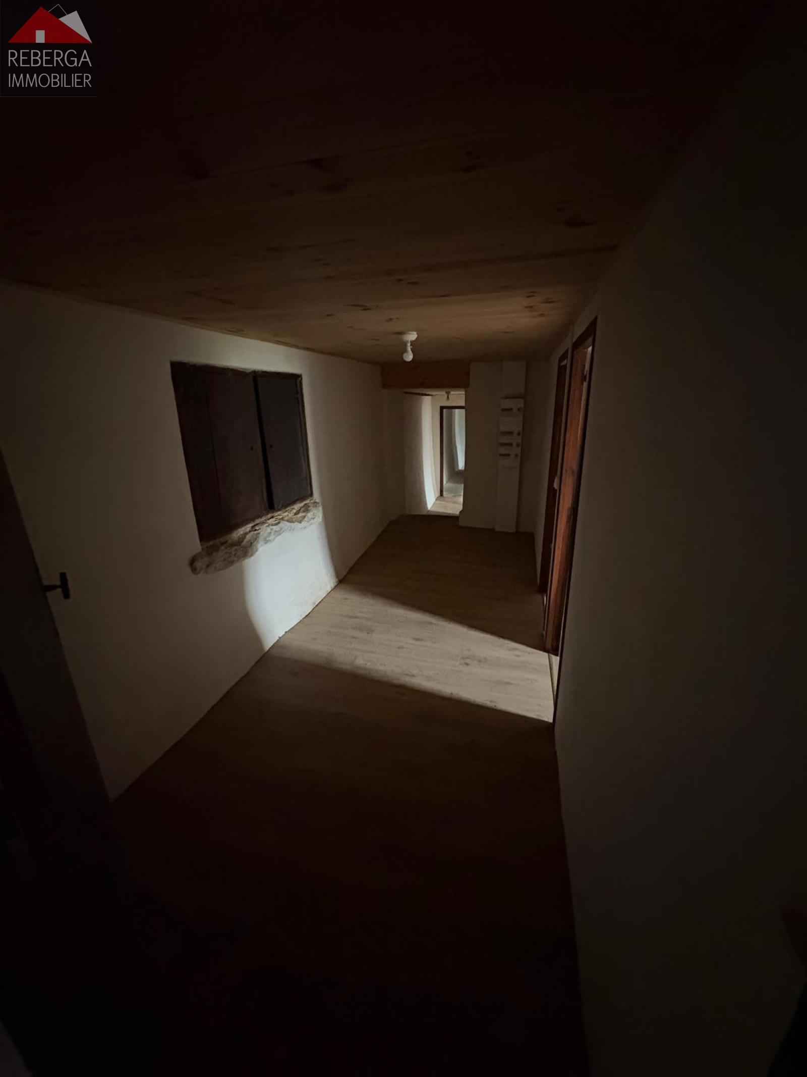 Ancien corps de ferme d'environ 125m² habitables rénové (électricité, fenetres double vitrage alu, peintures et sols intérieurs), composé d'une cuisine, un vaste double séjour (60m²), trois chambres, une salle d'eau et un wc séparé.
