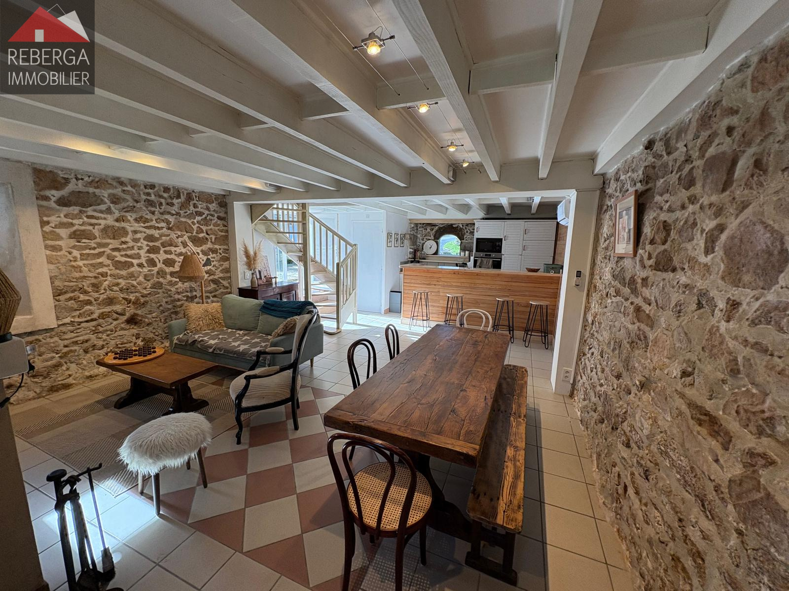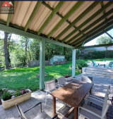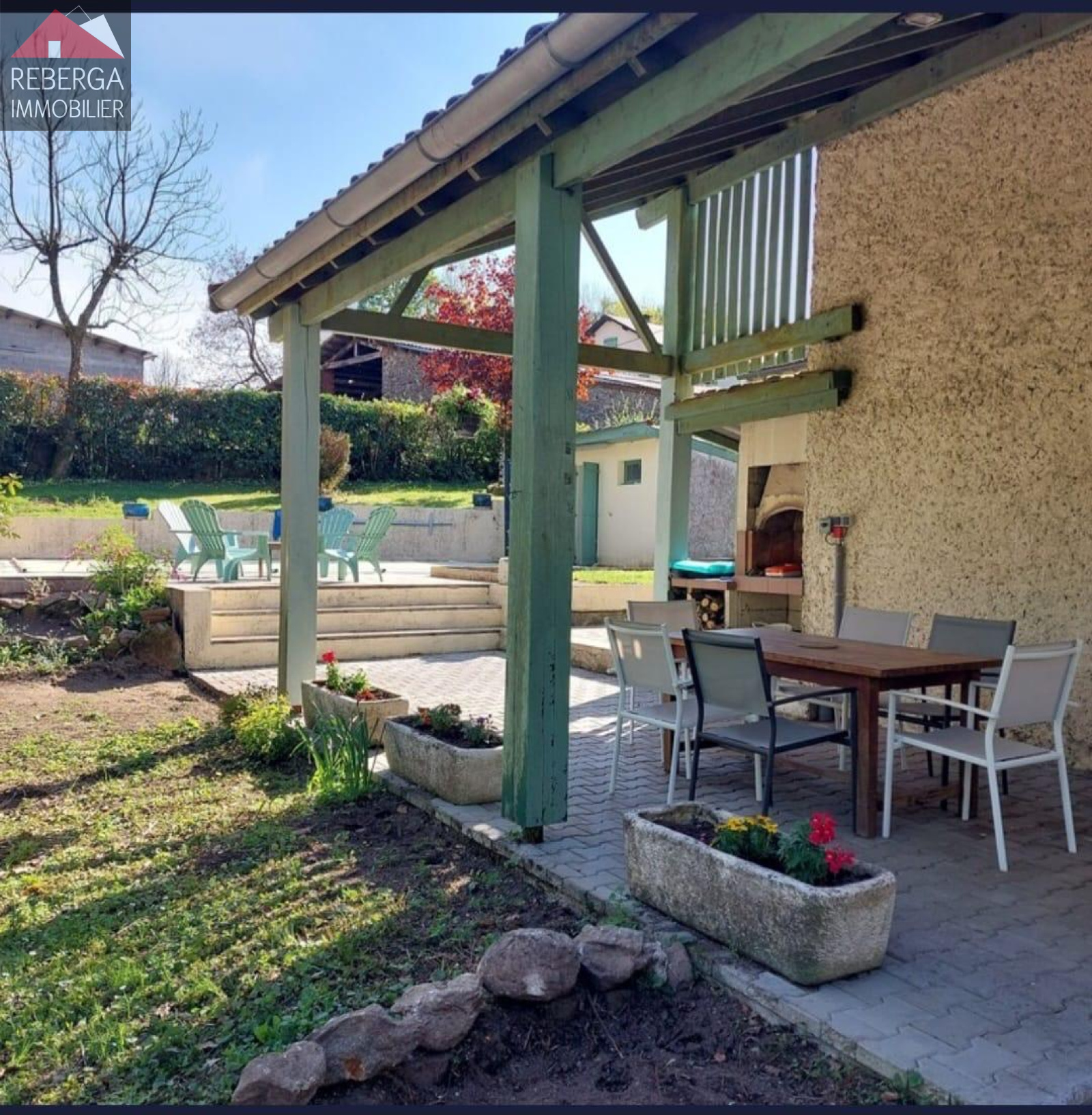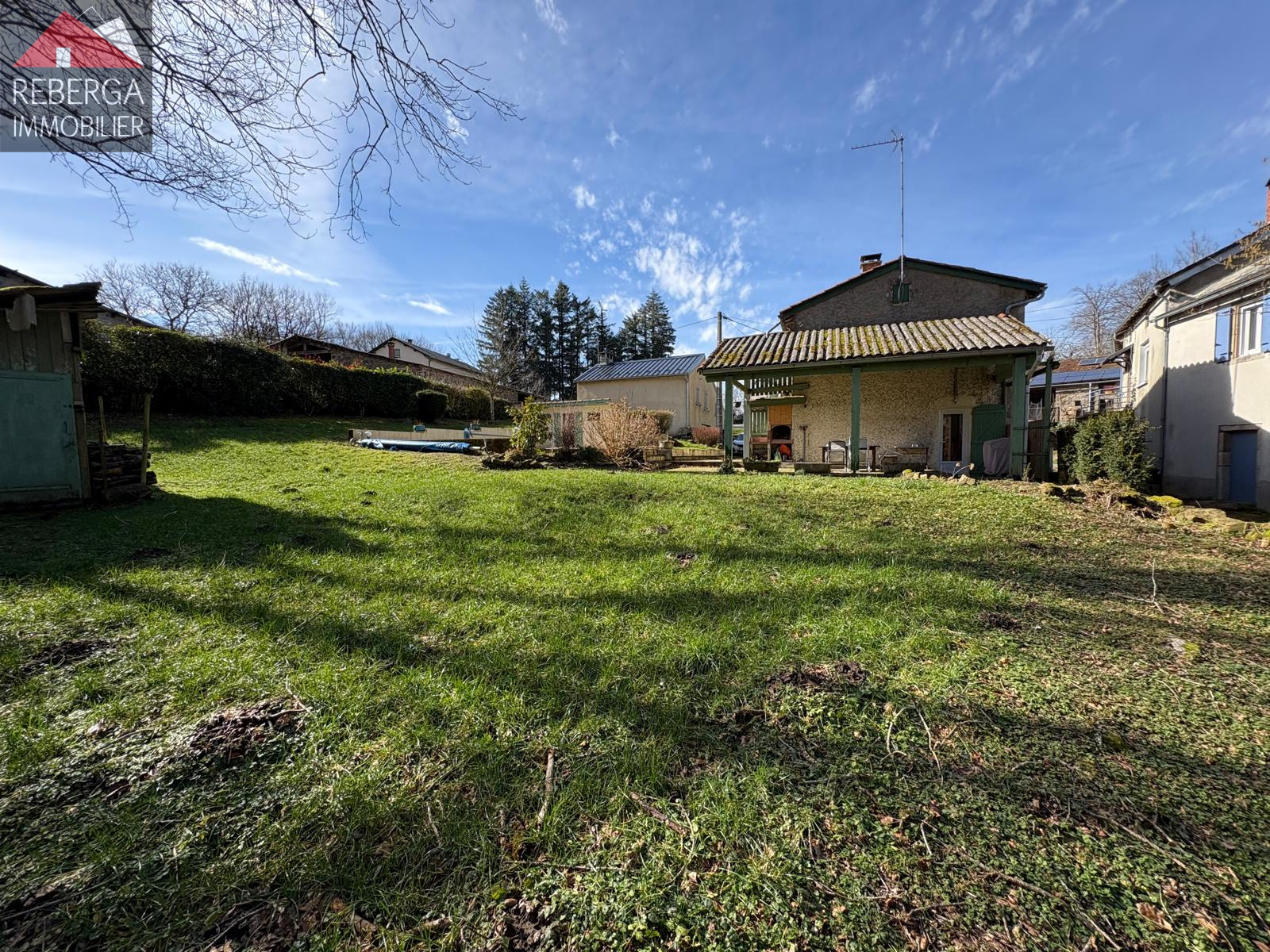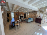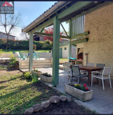 La maison se compose d'un vaste double séjour (insert à bois) avec cuisine ouverte, à l'étage trois chambres, une salle de bain et un wc. A l'extérieur terrasse couverte avec coin barbecue, piscine (8x4, traitement au sel) avec pool house.
