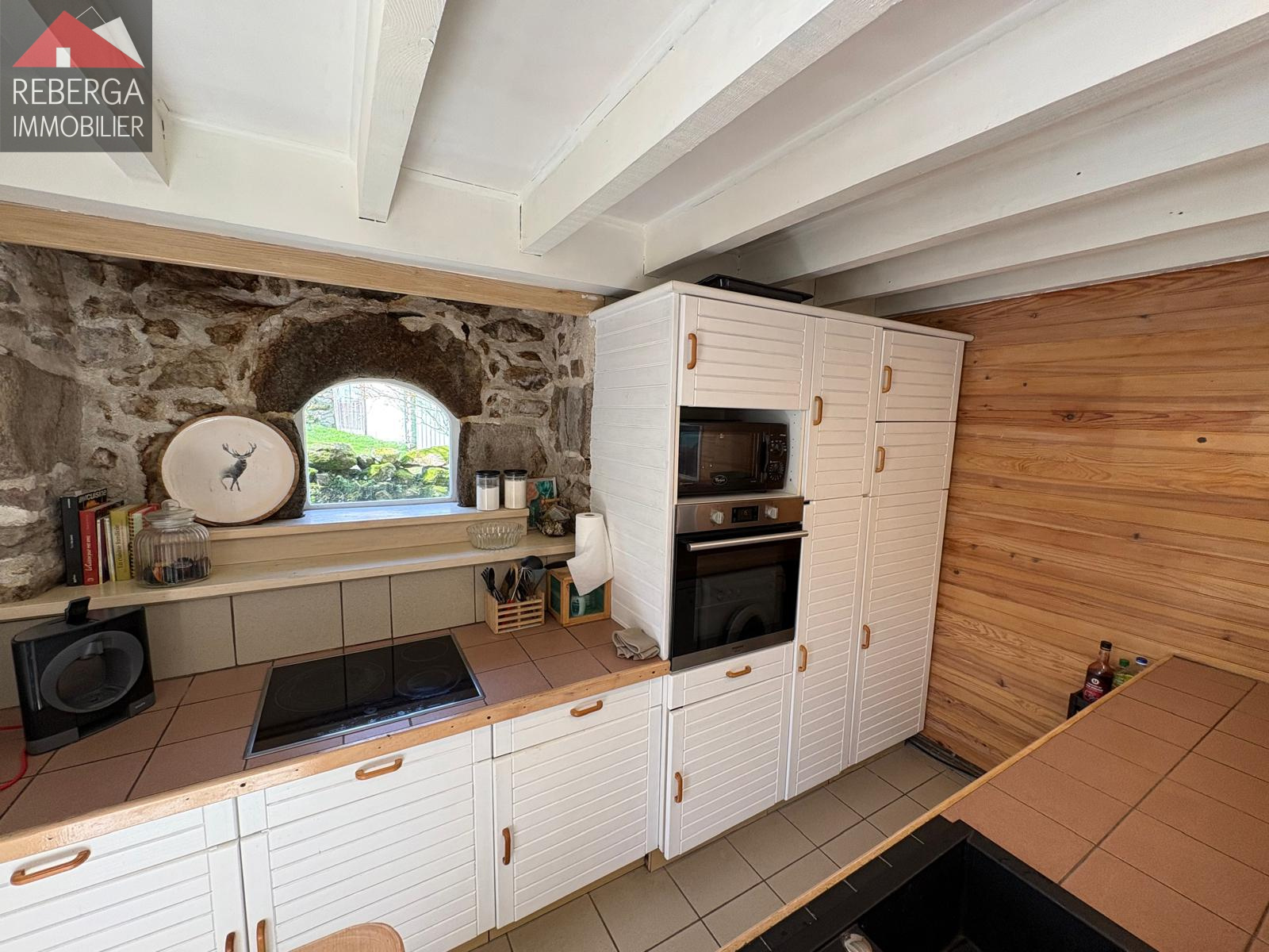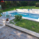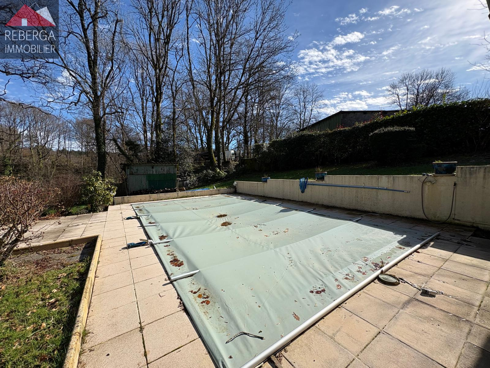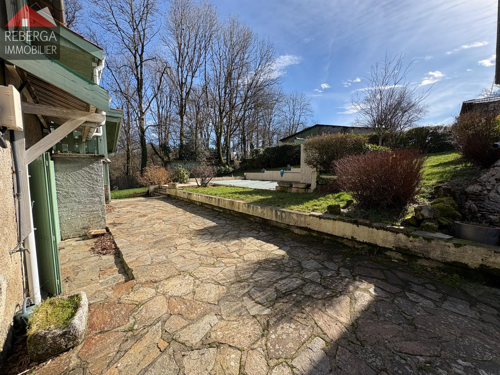 La maison se compose d'un vaste double séjour (insert à bois) avec cuisine ouverte, à l'étage trois chambres, une salle de bain et un wc. A l'extérieur terrasse couverte avec coin barbecue, piscine (8x4, traitement au sel) avec pool house.
