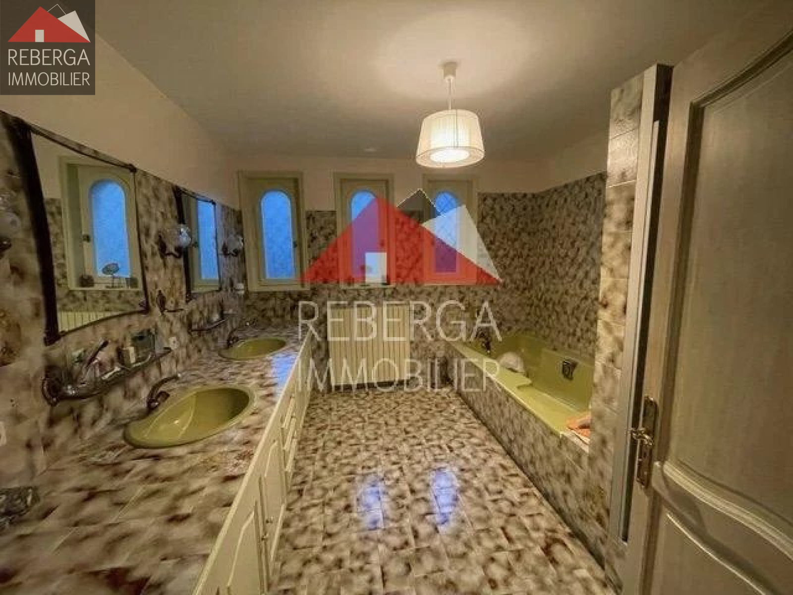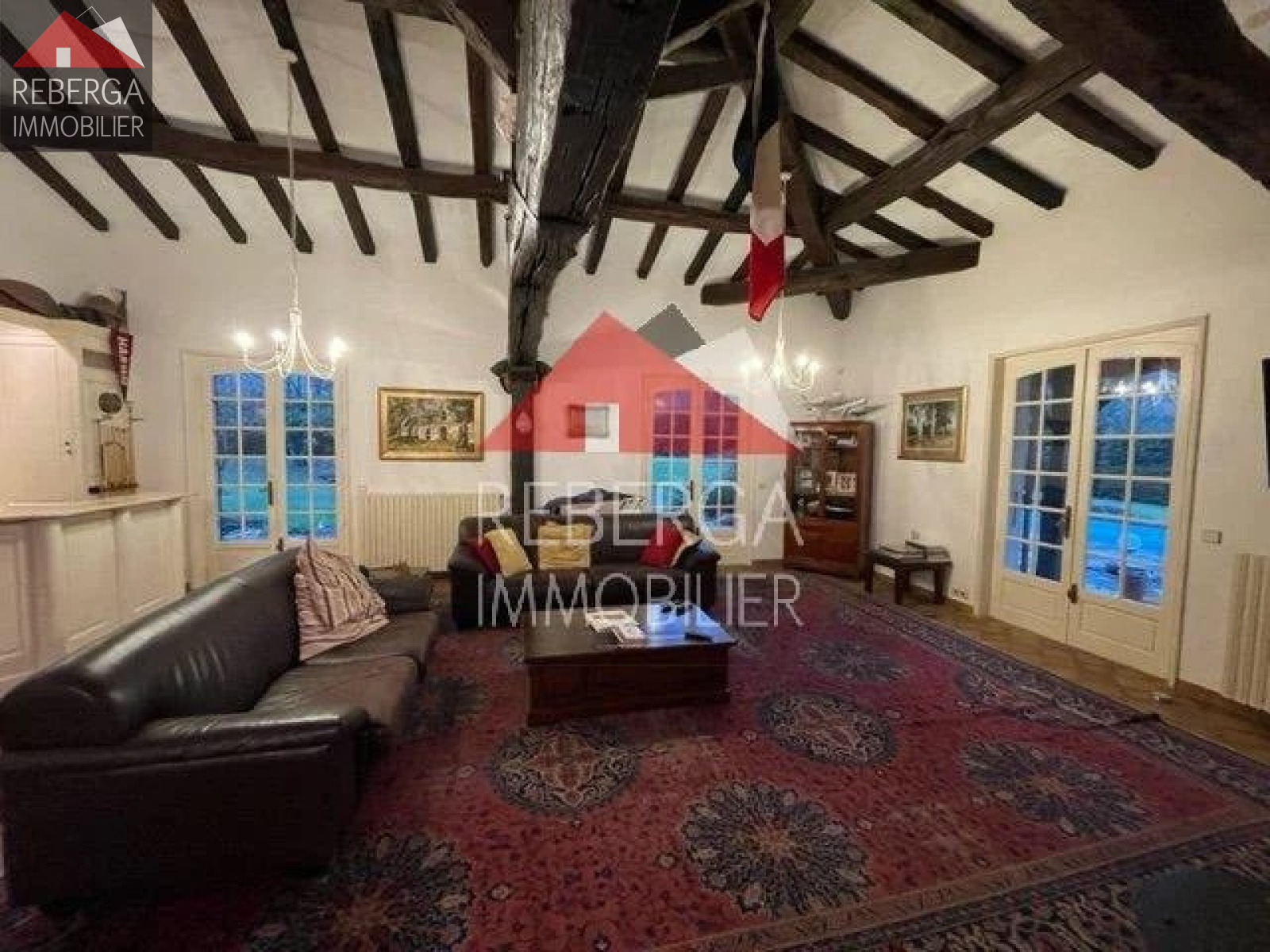 Villa d'environ 300 m2 habitables, implantée sur un terrain clos et arboré de 5300 m2. Entrée, grand salon avec cheminée et poêle à bois(donnant sur la terrasse plein sud), cuisine, bureau, 4 chambres 2 salle de bains (dont une double), 1 chambre à l'étage. Sous sol complet avec garage (3 véhicules) et deux pièces (possibilité de créer un appartement indépendant). Piscine sécurisée. Puits. Environnement calme tout en étant proche de la ville