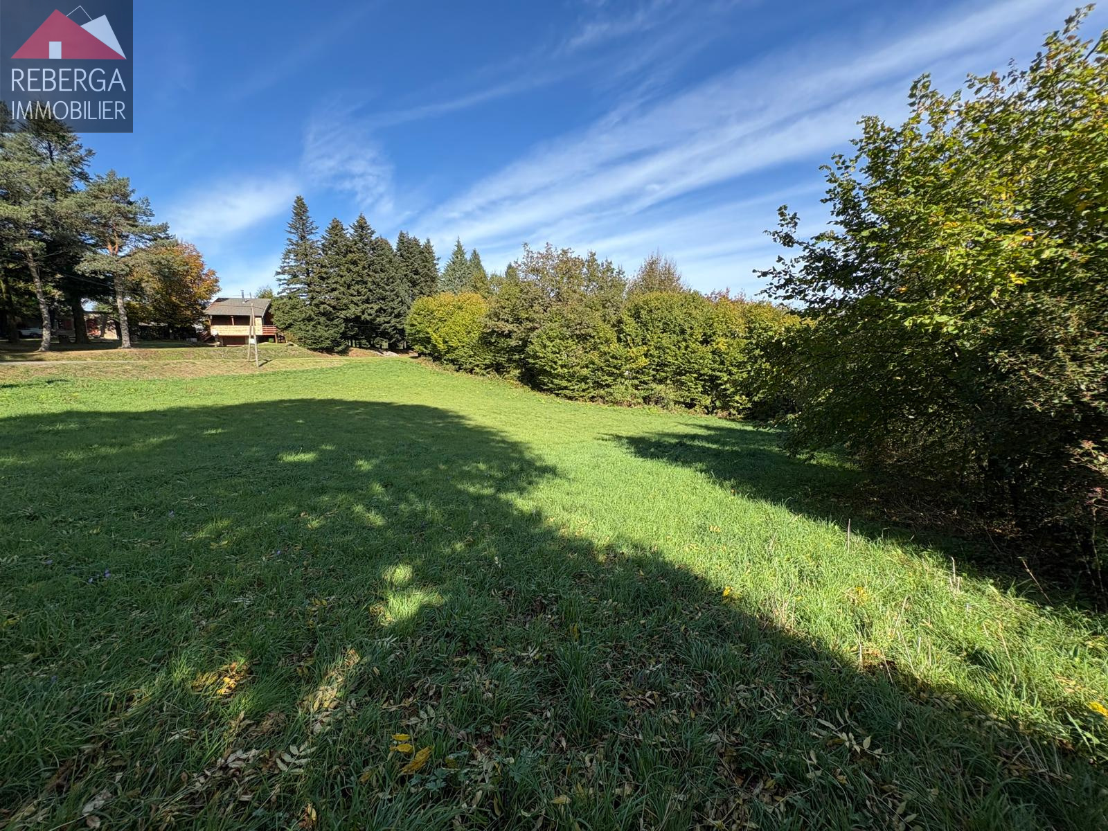 Légèrement en pente et entouré de verdure, proche des lacs et forêts.